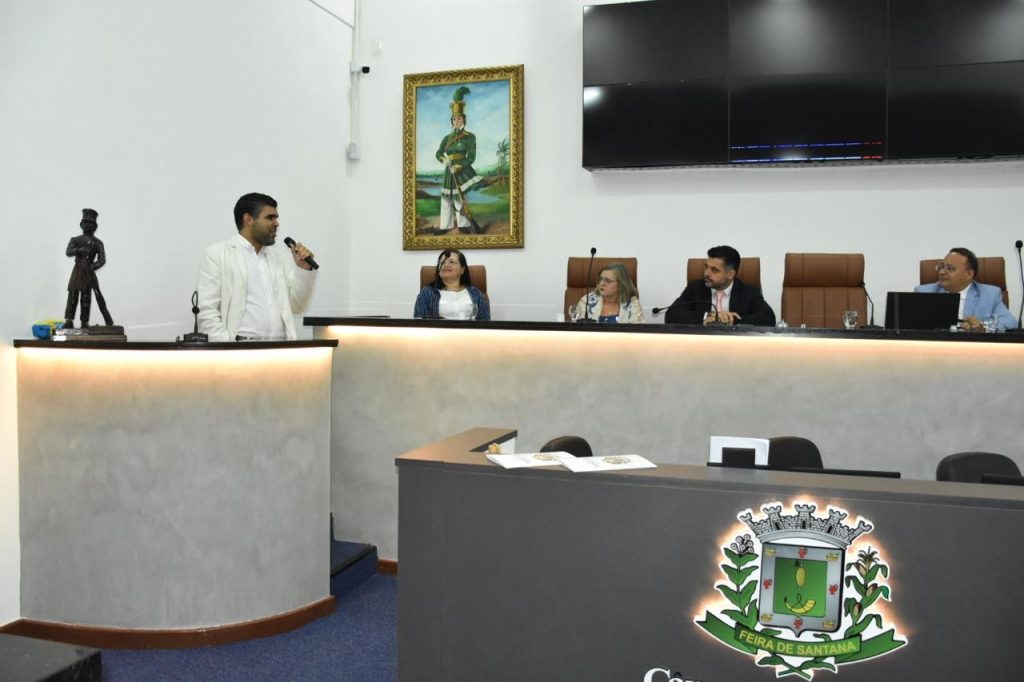 A sessão especial foi conduzida pelo presidente da Casa, vereador Marcos Lima, que compôs a mesa ao lado Pablo Roberto, vice-prefeito e secretário municipal de Educação, representando o prefeito José Ronaldo de Carvalho; vereador Professor Ivamberg, diretor da Escola do Legislativo; Rita Breda, vice-reitora da UEFS; Jackson Machado Nunes, diretor do CETENS/UFRB; Rosa Elisa, coordenadora do Programa Multiplicar (Escola do Legislativo da Assembleia Legislativa da Bahia – ALBA); Eurico Neto, Procurador da Câmara Municipal; e Neto Bahia, secretário municipal de Governo.