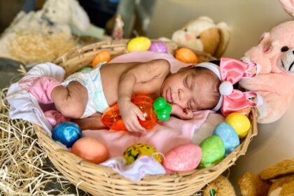 Recém-nascidos do HEC participam de ensaio fotográfico com tema de Páscoa