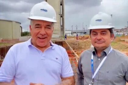 Em visita as obras da nova adutora da Embasa na caixa d’água…