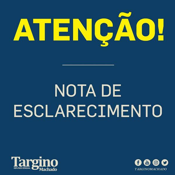 O deputado estadual Targino Machado, emitiu nesta noite de terça-feira 17, nota…