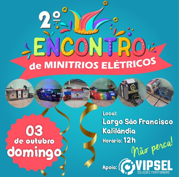 Está marcado para este domingo 03 de outubro, em Feira de Santana, o primeiro evento em Praça pública após logo período sem festejos por causa da Pandemia da Covid 19. O evento é 2⁰ Encontro de Mini-Trios Elétricos, no Largo São Francisco Bairro Kalilândia Centro às 12:00 horas.