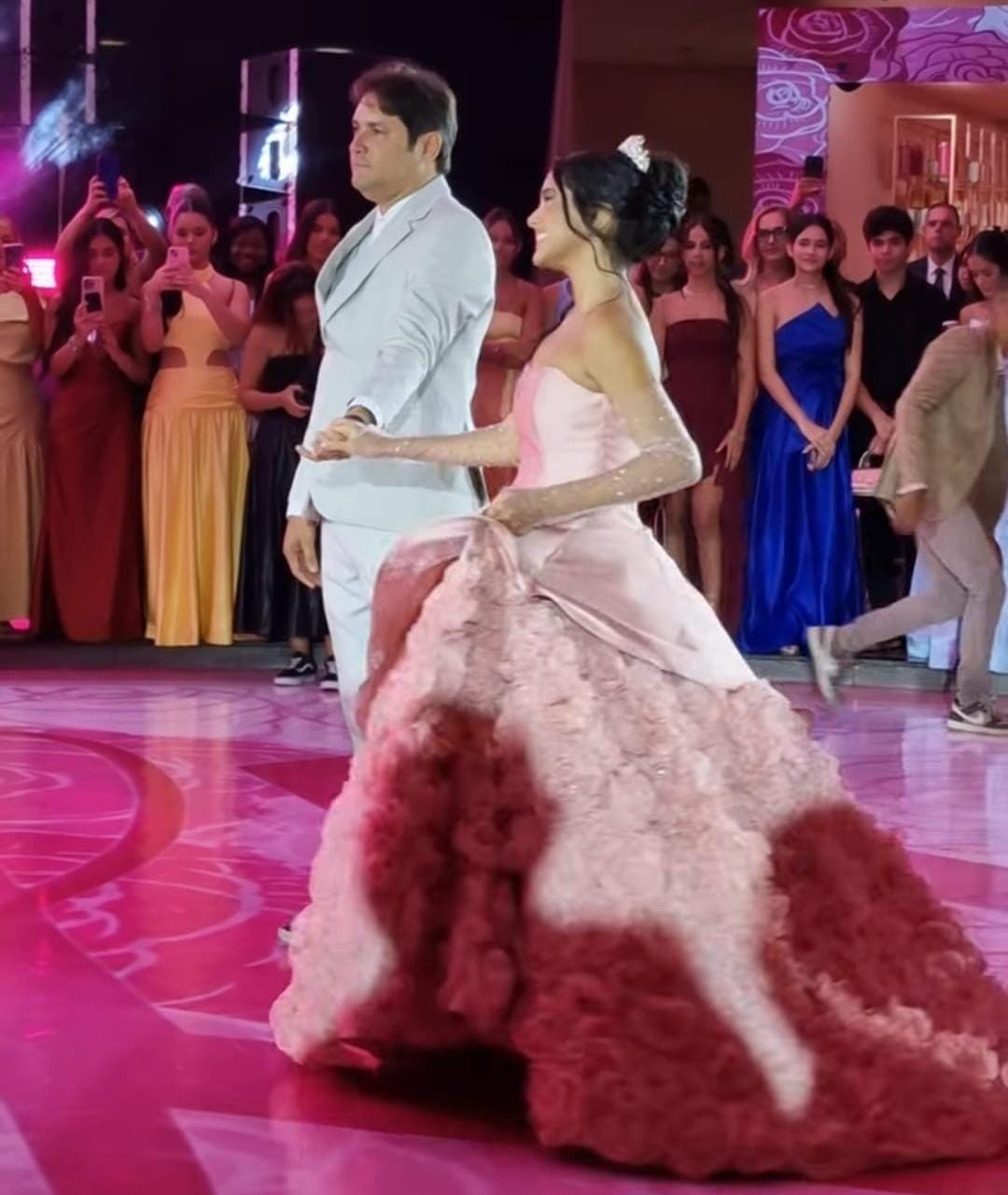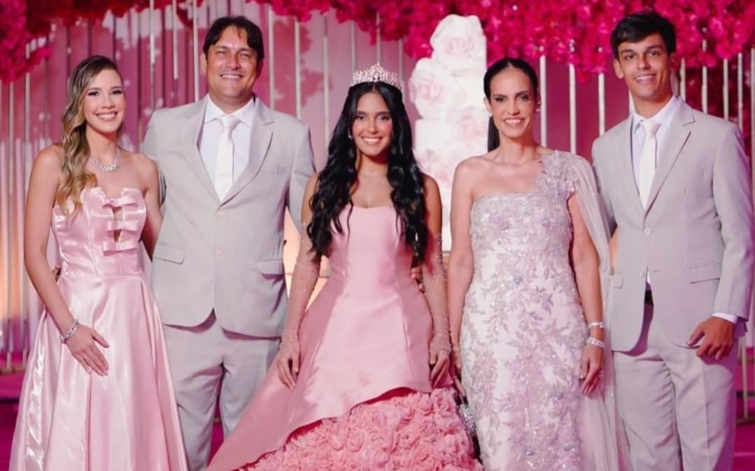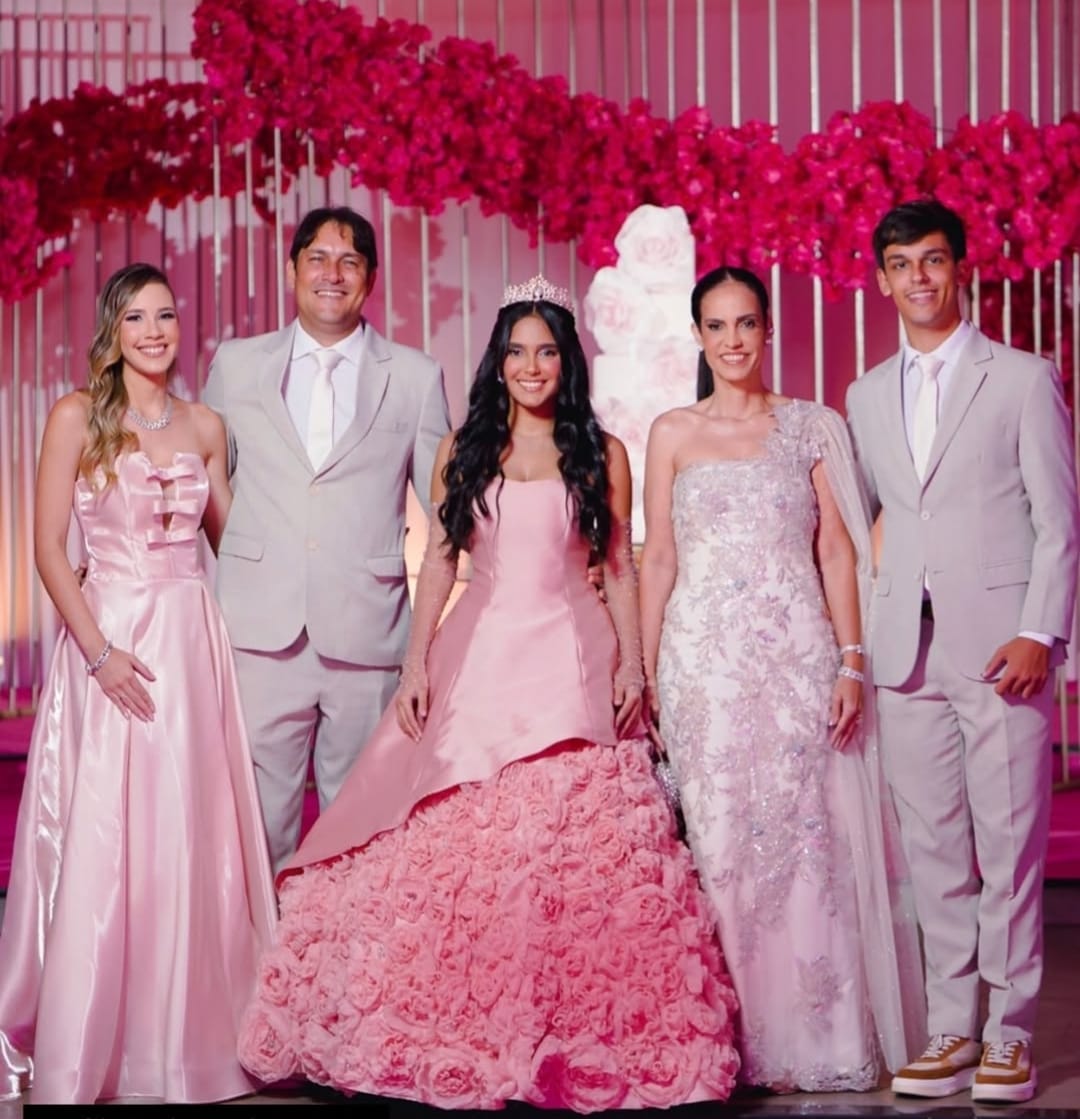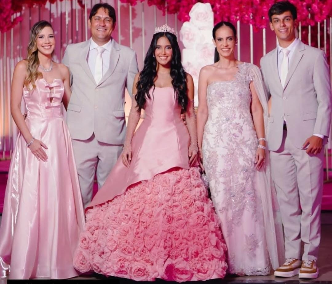 O momento mais aguardado foi, sem dúvida, a tradicional valsa. Maria Luiza protagonizou um espetáculo à altura da grandiosidade da festa. Em um gesto carregado de simbolismo, dançou com seu pai, Dr. Junior Leite, em uma cena que arrancou aplausos e lágrimas da plateia. Em seguida, foi conduzida pelo tio, pelo irmão e por convidados especiais, reforçando o significado de união, proteção e amor que envolve a passagem da infância para uma nova fase da vida.