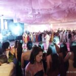 Logo na entrada, o ambiente encantava. A decoração, cuidadosamente planejada, remetia a um verdadeiro baile de princesa em um castelo luxuoso. Lustres imponentes, arranjos florais exuberantes e uma iluminação cênica deram o tom de sofisticação à noite, que foi regada a um buffet refinado e bebidas da mais alta qualidade, garantindo conforto e requinte aos presentes.