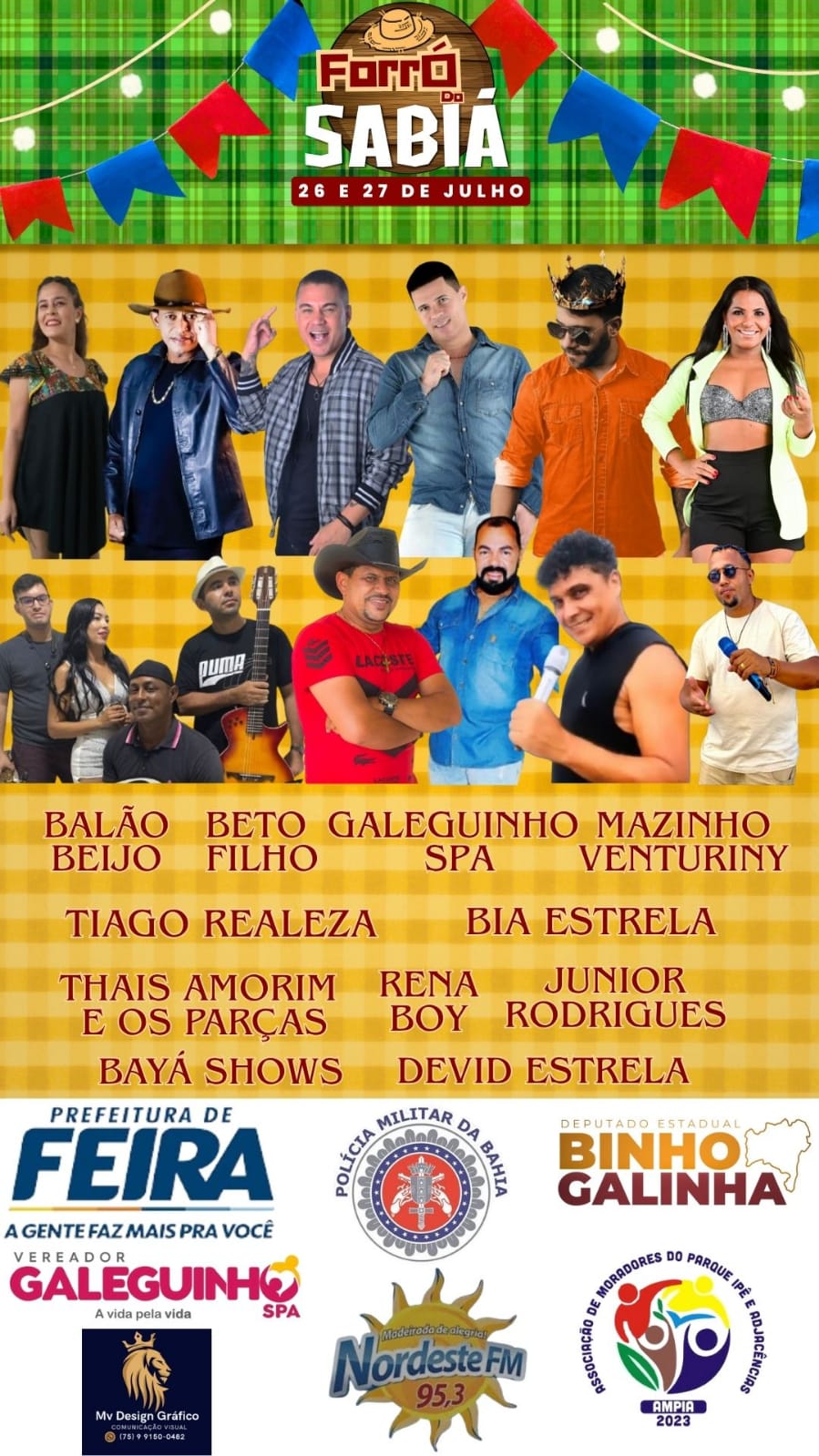 O evento contou com shows de grandes nomes da música local, como Galeguinho SPA, Beto Filho, Balão Beijo, Mazinho Venturiny, Thiago Realeza, Rena Boy, Devid Estrela, Junior Rodrigues e Bayá Shows. Juntos, os artistas fizeram do Forró do Sabiá uma verdadeira maratona de alegria, ritmo e tradição.