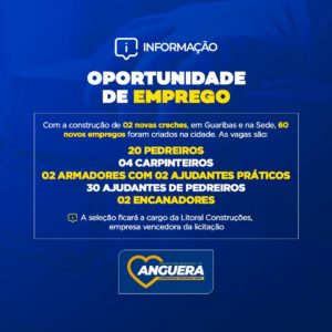 Geração de emprego e renda tem sido os grandes desafios para os prefeitos para esse ano de 2022. Porém, em Anguera esses são objetivos prioritários para o prefeito Mauro Vieira.