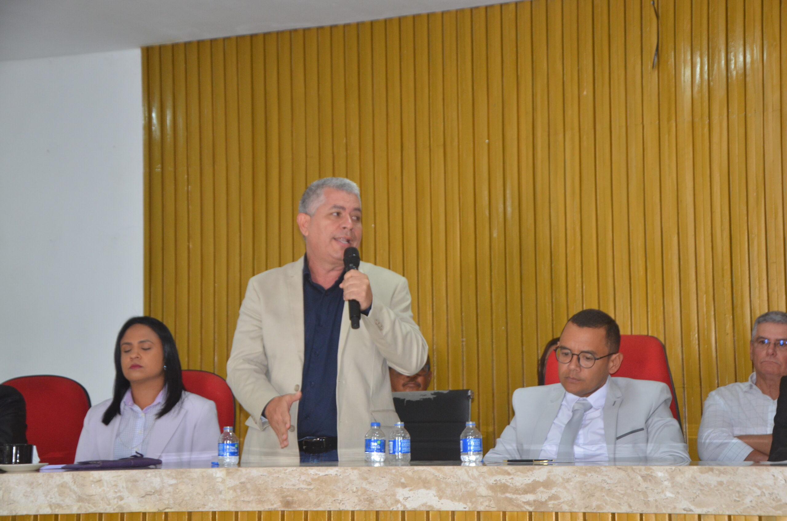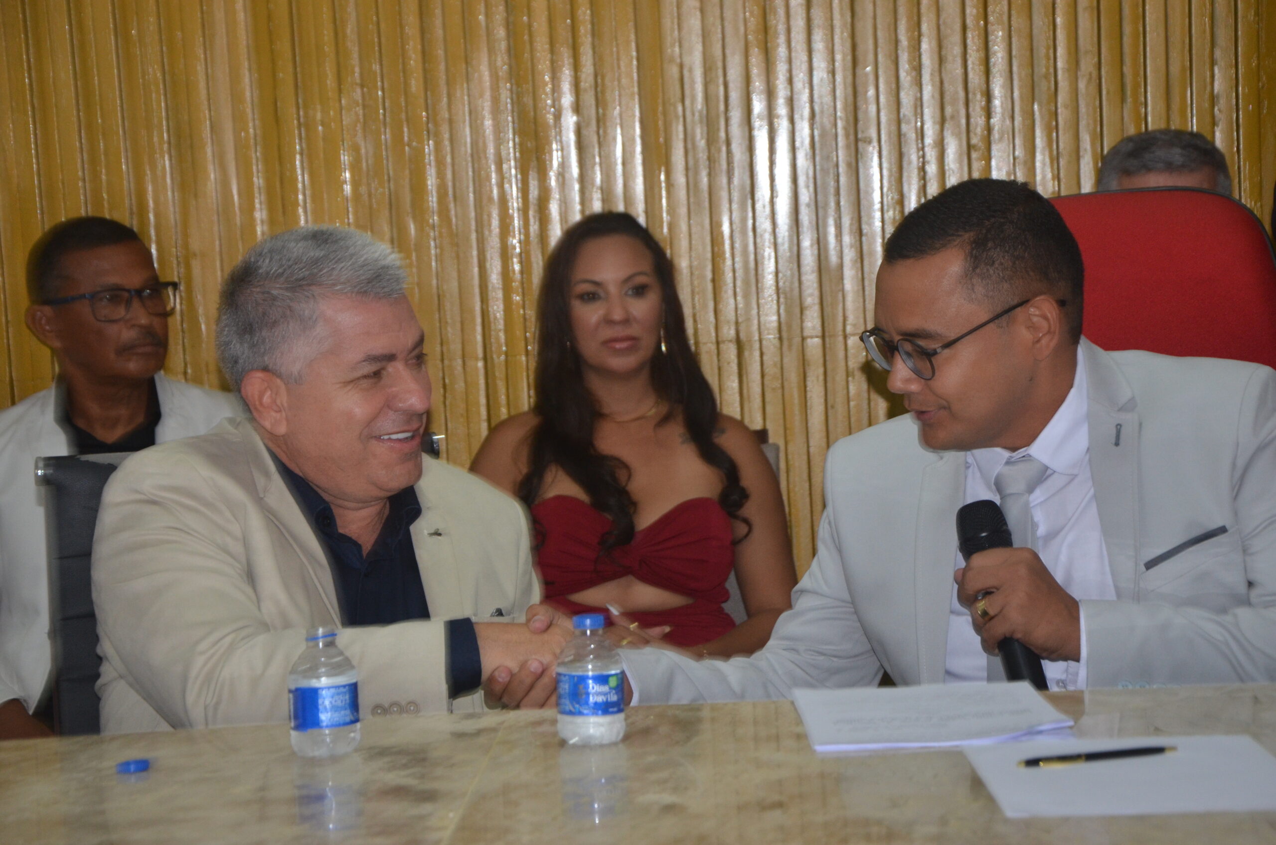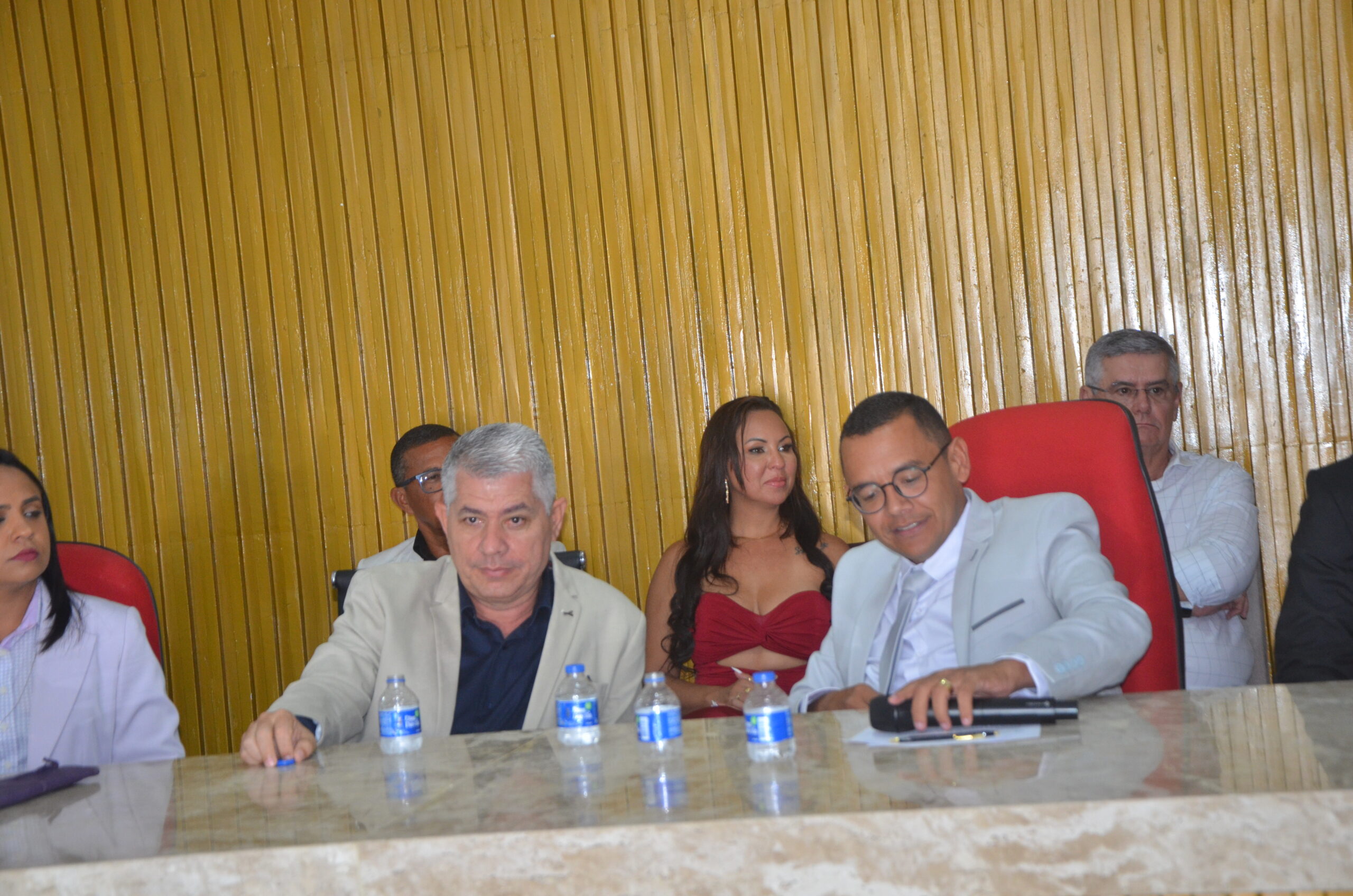 Na sessão, a mesa de honra foi formada com o prefeito Mauro Vieira, Patrícia Gaudino (primeira dama do município), o ex-prefeito Ary Vieira, Moisés Couto (ex-vice-prefeito), os secretários, José Bispo e Jaqueline Suzart.