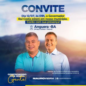 “Convido você a recepcionar o governador do Estado, Rui Costa dos Santos (PT), na próxima terça-feira a partir das 09:00 horas, na Praça Arthur Vieira. A visita do governador, é motivo de grande satisfação e vai trazer importantes benefícios para a população do município.