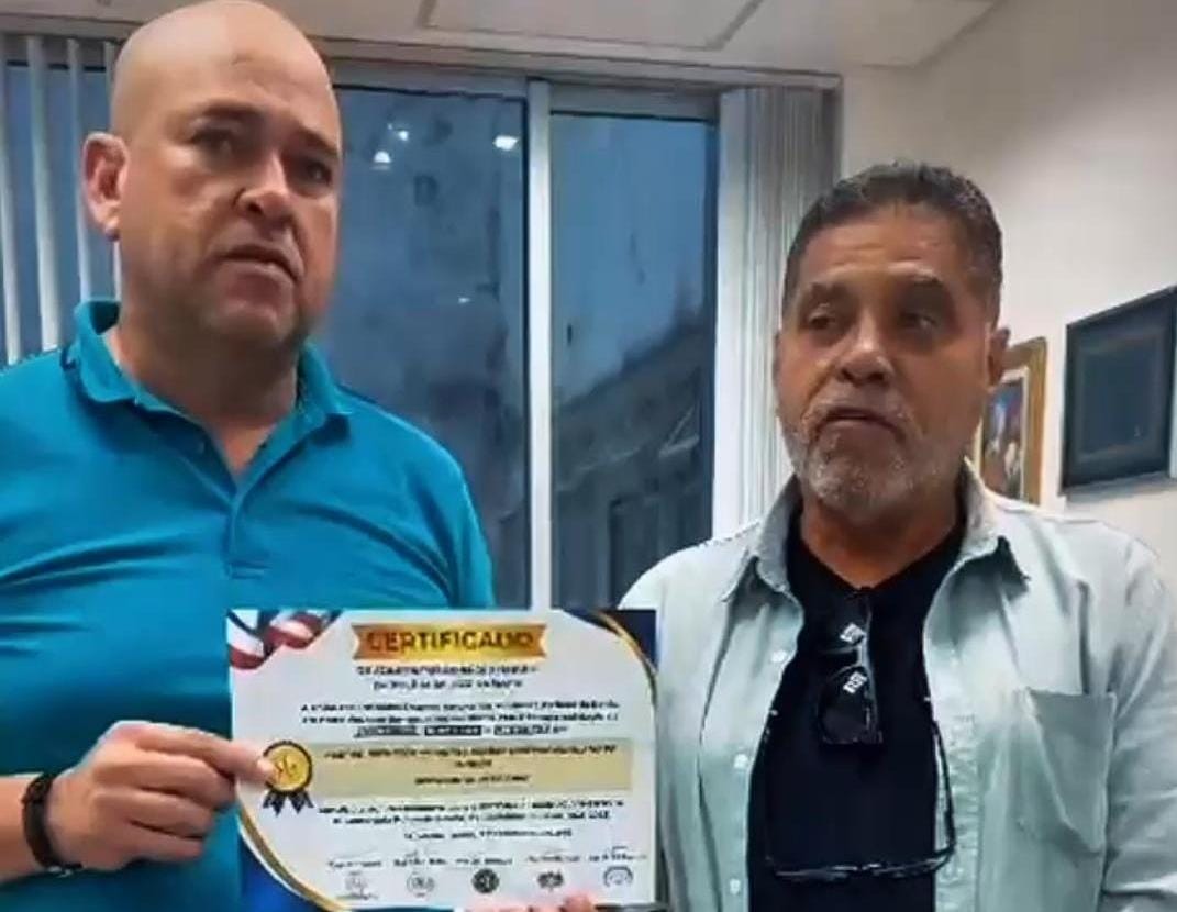 Foto: Binho Galinha recebendo o certificado do representante da União das Entidades Representativas dos Militares Estaduais da Bahia
