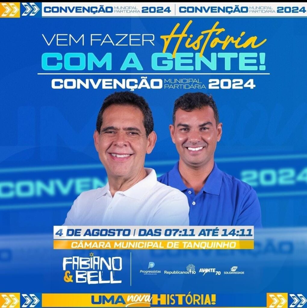 Neste domingo, 4 de agosto, Fabiano Pereira (PP), pré-candidato à Prefeitura de Tanquinho, dará um passo crucial em sua trajetória política. A partir das 7h11 até as 14h11, a Câmara Municipal sediará a convenção partidária da coligação formada pelos partidos PP, Republicano, Solidariedade e Avante. O evento marcará a oficialização da candidatura de Fabiano Pereira e de Bel para o cargo de vice-prefeito e dos candidatos ao cargo de vereador.