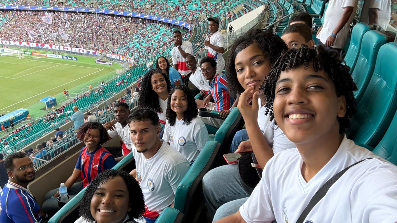 Sábado, 14 de fevereiro. Um dia marcado por surpresas, muita alegria e vibração. Um ônibus cheio de expectativas saiu de Antônio Cardoso rumo a Salvador levando alunos e alunas do Colégio Estadual do Campo de Tempo Integral Genivaldo de Almeida Brandão para uma experiência fora da rotina: conhecer de perto a Arena Fonte Nova e assistir a uma partida do Esporte Clube Bahia.