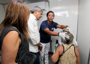 Também estão sendo ofertados exames pré-operatórios (ultrassonografia, eletrocardiograma, raio-X e exames laboratoriais) e triagem para cirurgias eletivas (histerectomia, vesícula, hérnia inguinal, epigástrica e umbilical), totalizando mais de cinco mil atendimentos diários, entre consultas, exames e triagem para cirurgia oftalmológica.