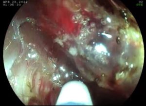 “A paciente de 88 anos, obesa, diabética, com risco cirúrgico bastante aumentado e que graças ao empenho de toda a equipe a lesão foi retirada por completo. Ela já recebeu alta, está muito bem”, comemorou Dr. Victor Galvão, acrescentando que o grande diferencial é que a ablação de toda mucosa e submucosa foi feita objetivando a cura.