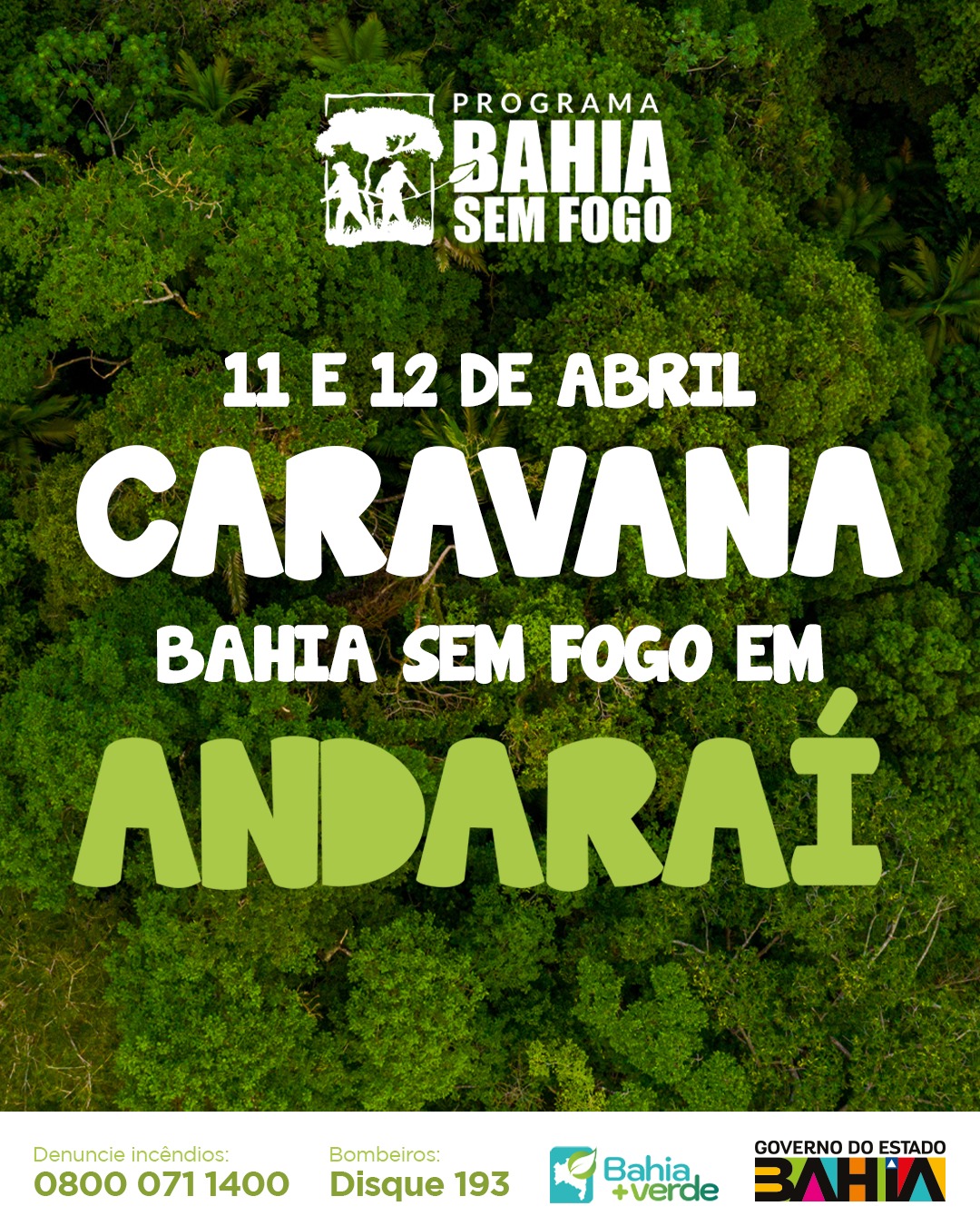 Na próxima quinta-feira (11), em comemoração ao Dia da Chapada Diamantina, a cidade de Andaraí, a 423 quilômetros de Salvador, receberá a Caravana Bahia Sem Fogo, uma iniciativa pioneira do Governo do Estado que visa fortalecer a atuação conjunta dos poderes públicos, comunidades locais e brigadistas voluntários, na prevenção e combate aos incêndios florestais em todo o estado.