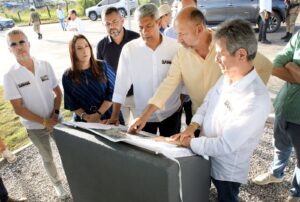 O município de Eunápolis recebeu, nesta quinta-feira (26), a visita do governador Jerônimo Rodrigues, para uma série de entregas e anúncios nas áreas de saúde, infraestrutura, saneamento e habitação. Acompanhado pelos secretários de Turismo (Setur), Mauricio Bacelar e de Cultura (Secult) Bruno Monteiro; o superintendente de Infraestrutura de Transportes da Seinfra, Saulo Pontes e outras autoridades, o governador inaugurou no âmbito do programa Bahia em Movimento, a obra de reforço, pavimentação e implantação de drenagem da interseção de acesso à Policlínica na BR-367, um importante trecho de entrada na cidade, que foi renovado com investimento de R$2,5 milhões por meio da Secretaria de Infraestrutura (Seinfra).