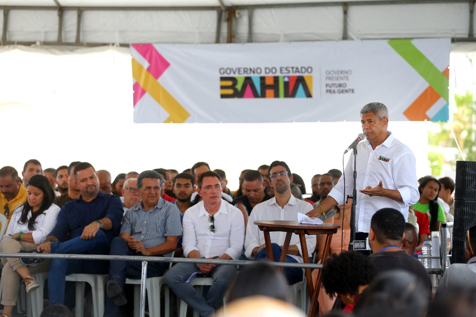 Ainda nesta manhã, foram entregues cinco títulos de terra do projeto Bahia Mais Forte, Terra Legal – iniciativa do governo estadual que visa regularizar a posse de terras e garantir segurança jurídica para os moradores da região. Jerônimo também autorizou a Secretaria de Infraestrutura Hidrica e Saneamento (Sihs), com apoio da Empresa Baiana de Águas e Saneamento (Embasa), a realizar melhorias no sistema de abastecimento de água do distrito de Pataíba e da comunidade Curral de Fora.