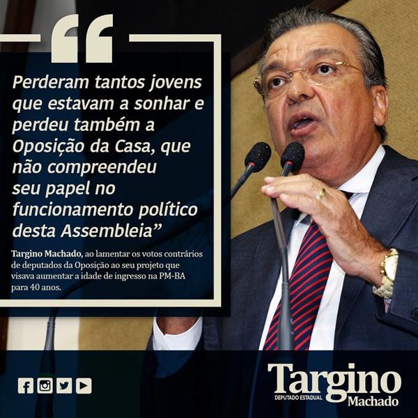 Durante discurso na Assembleia Legislativa da Bahia, o deputado estadual Targino Machado (PPS), disse que na Bahia, só quem tem tranquilidade e paz, são os que moram no Palácio de Ondina.