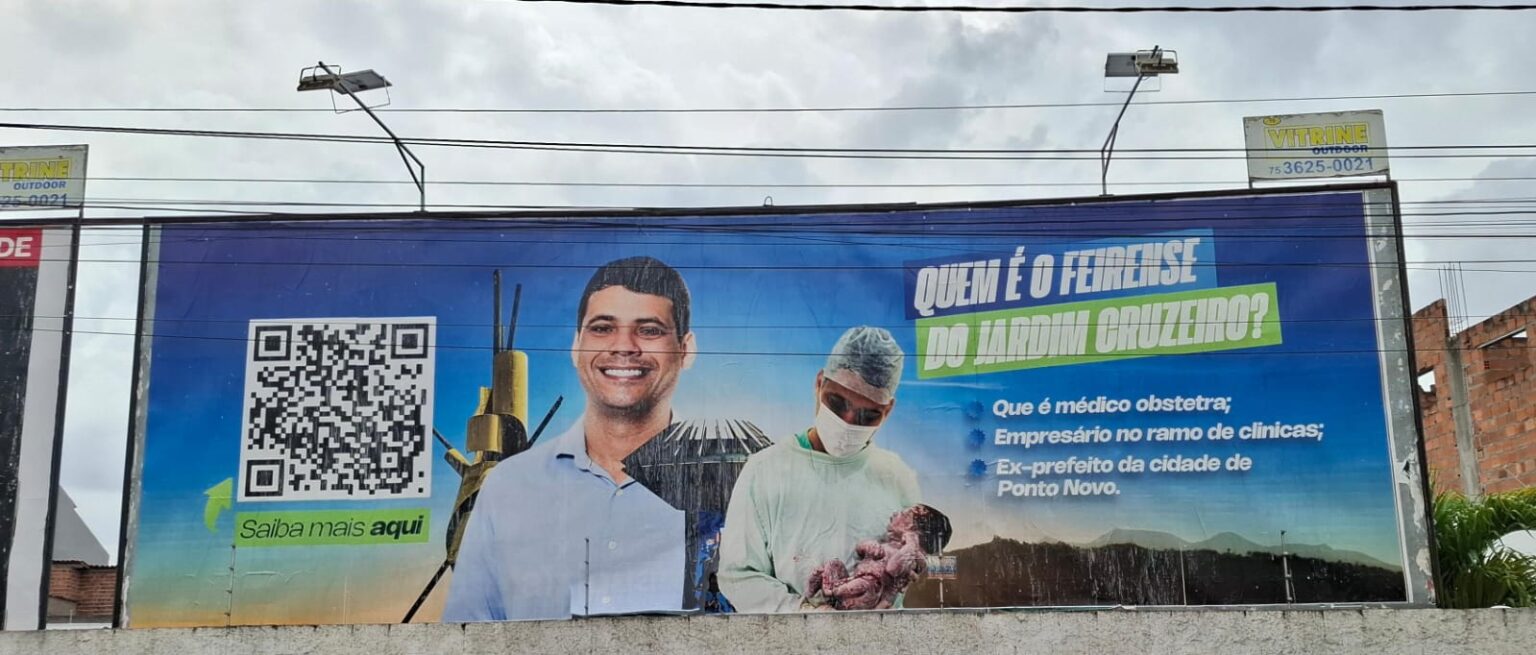 Nos últimos dias, um outdoor instalado em uma das avenidas mais movimentadas de Feira de Santana despertou a curiosidade de quem passava. Sem muitas informações, a peça exibe apenas a frase “Conheça a história de um feirense que venceu na vida” e um QR Code. O mistério instigou centenas de pessoas a escanear o código e acessar o conteúdo por trás da campanha. O que encontraram foi a inspiradora trajetória de Dr. Thiago Geleno, médico, empresário, ex-prefeito de Ponto Novo e, acima de tudo, um homem que nunca esqueceu suas origens.