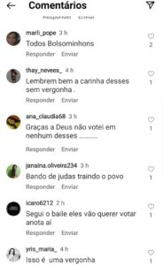 “Lembrem bem a carinha desses sem vergonhas”, criticou o perfil @thay_nevees. Já @ana_claudia68 deu “graças a Deus” por não ter votado em nenhum desses. @janaina.oliveira2334 escreveu: “Bando de judas traindo o povo”, enquanto @yris_maria classificou como “isso é uma vergonha”.
