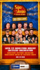 Passarão pelo palco do ‘SÃO JOÃO DA NOSSA GENTE’ Cavaleiros do Forró, Nadson, o Ferinha, Zezo, Luan Estilizado, Murilo Huff, Lairton e diversas outras atrações. (Veja a grade completa ao final da matéria).