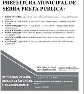 Foi publicado no Diário Oficial do Município desta quinta-feira (01), a nomeação de Edvaldo Santos Silva para comandante e Vinícius Macedo de Araújo para subcomandante da Guarda Municipal serrapretense.