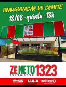 Deputado Federal José Neto (PT) inaugura nessa quinta-feira (18/8) na Avenida Getúlio Vargas, nº 572 em Feira de Santana. A grande inauguração do Comitê será às 18h.