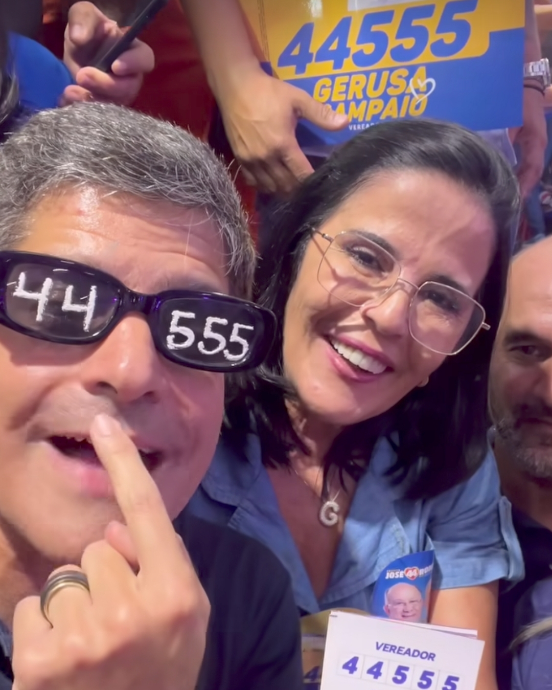 Com seu jeito carismático, ACM Neto, que possui forte influência política no estado, surge usando um óculos customizado, onde estampa o número da vereadora: 44555. “Olá, Feira, estou aqui com Gerusa, essa mulher que realmente vai ser campeã de votos no dia seis de outubro, tanto que coloquei aqui nos óculos 44555, que é o número dessa vereadora que vai arrebentar!”, declarou, esbanjando simpatia.