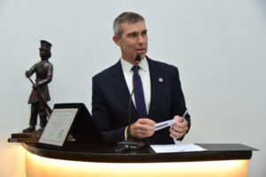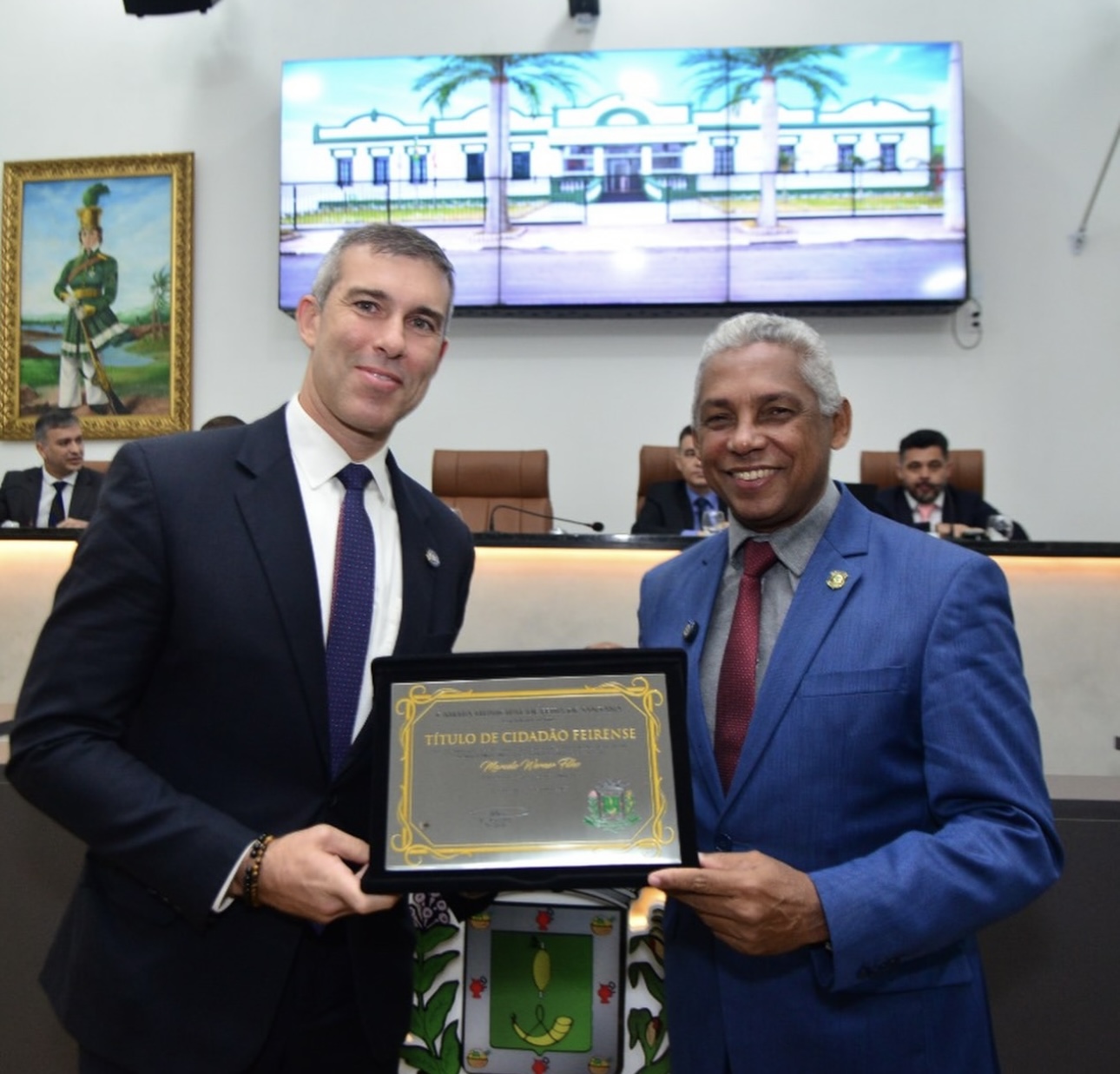 Um reconhecimento, por seu esforço, que resulta na “maior redução nos índices de criminalidade neste município, nos últimos tempos”, mas também reivindicações de novos equipamentos para Feira de Santana. Assim recepcionou o vereador Silvio Dias ao secretário de Segurança Pública do Estado, o soteropolitano Marcelo Werner Filho, que recebeu da Câmara Municipal, em sessão solene na noite desta terça (17), o título de Cidadão Feirense. O petista, autor do Projeto de Decreto Legislativo concedendo a honraria, foi designado pelo presidente Marcos Lima (União) a fazer a saudação da Casa ao homenageado.
