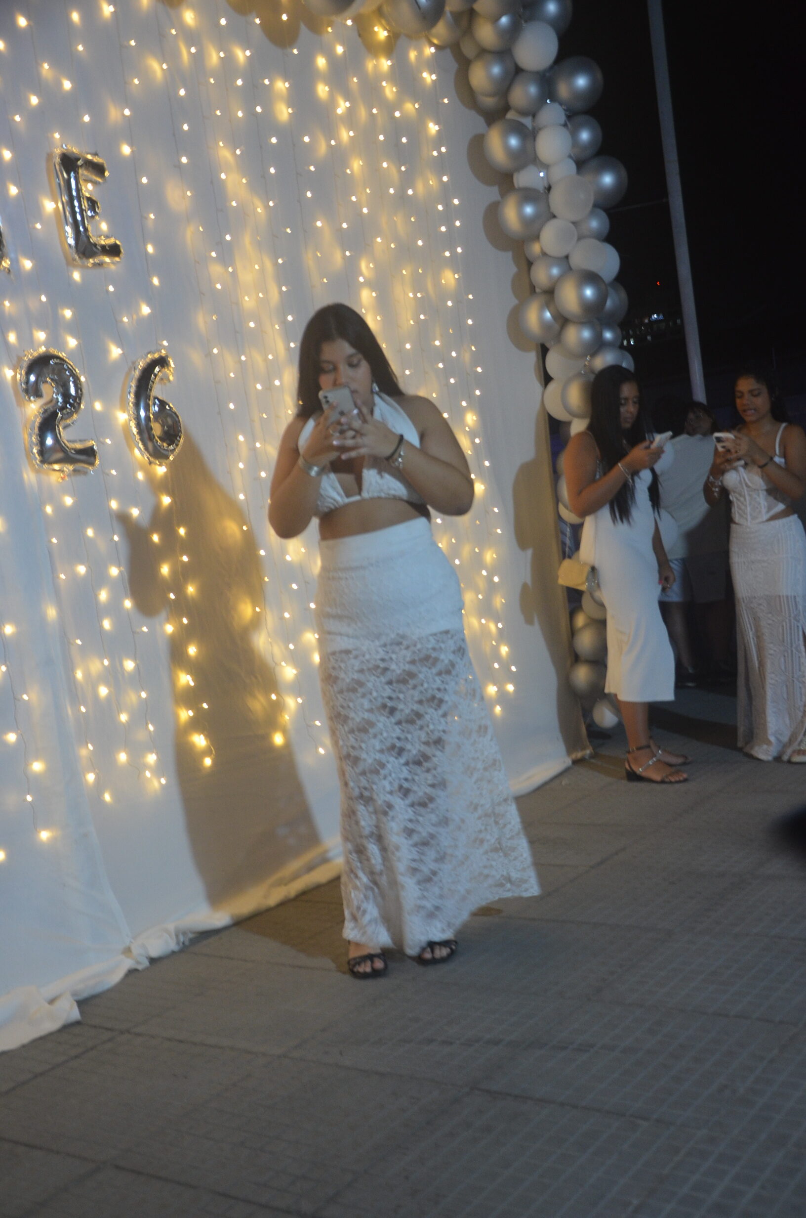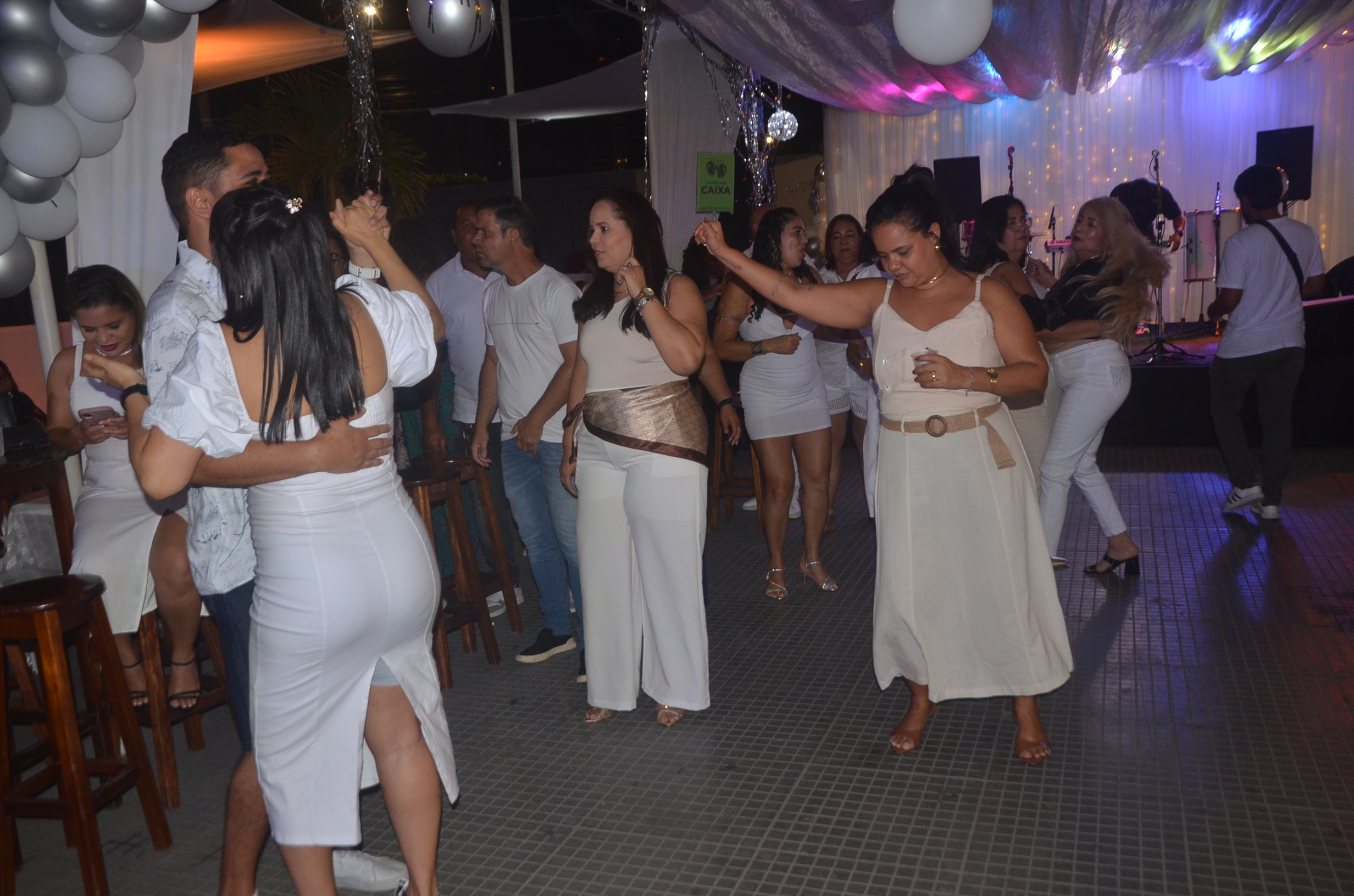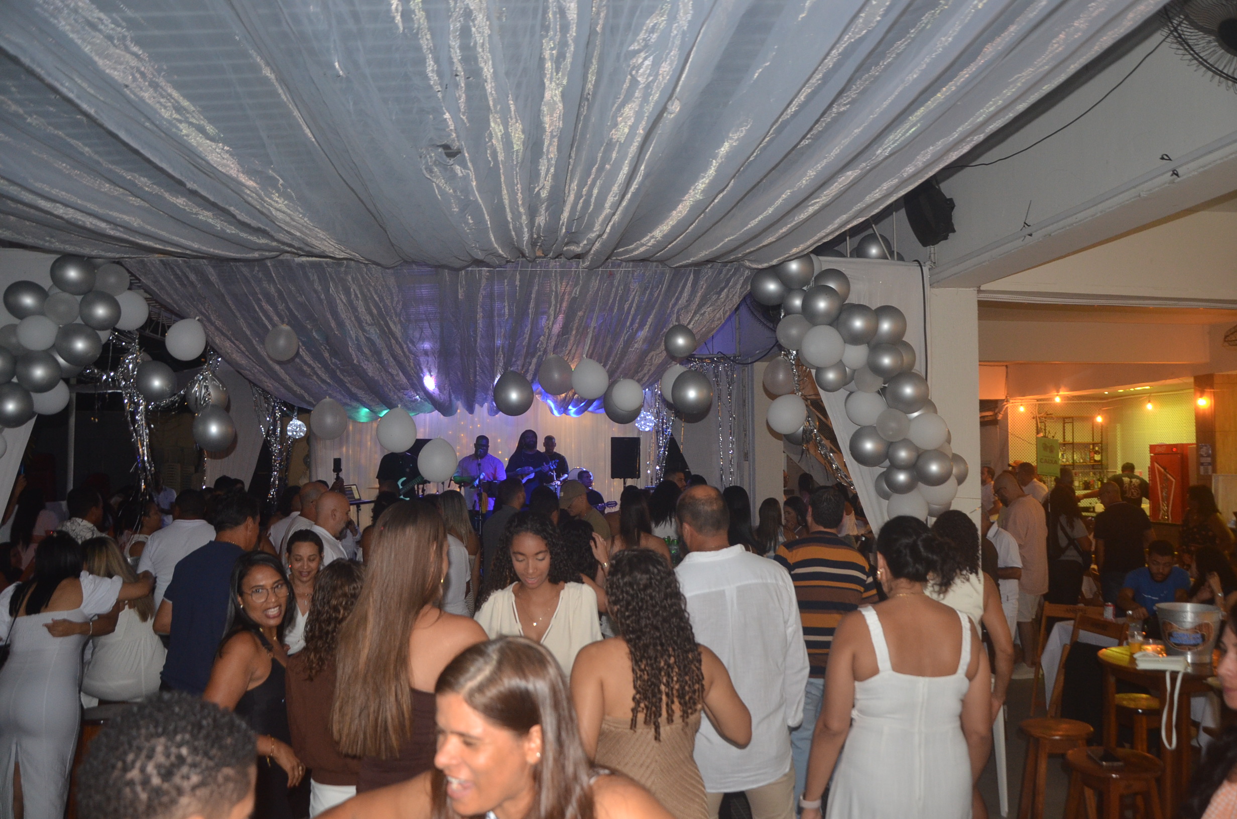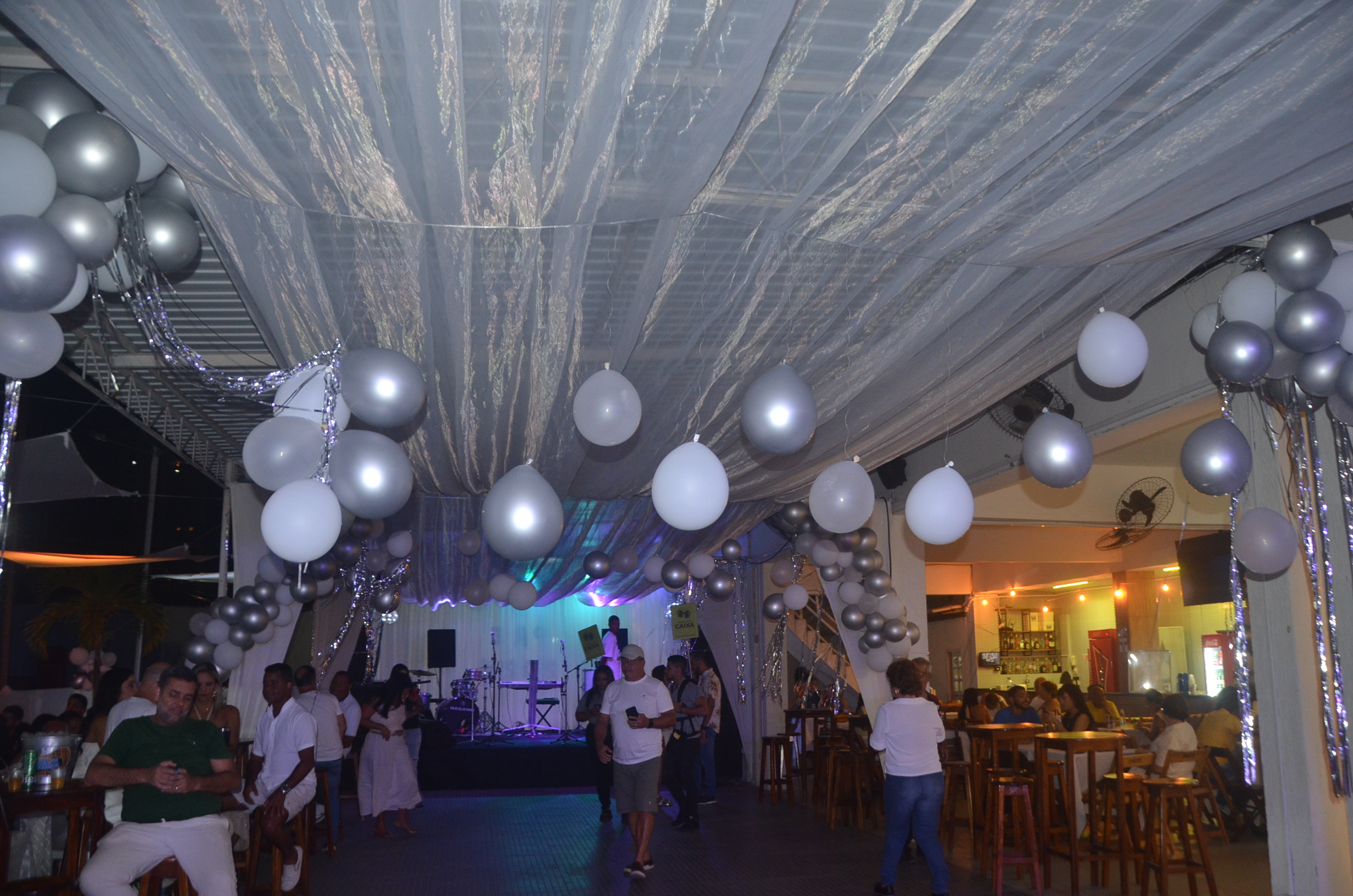 O salão do clube foi adornado com um toque de magia, evocando o requinte das festas de gala e transportando os presentes para uma atmosfera digna de um verdadeiro Réveillon. A predominância do branco nos trajes dos convidados simbolizou a esperança e os bons sentimentos para o ano que se aproxima, enquanto a fartura de bebidas e comidas de alta qualidade contribuiu para um ambiente festivo e de pura alegria.