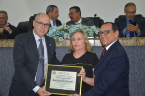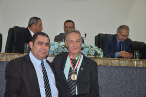 O parlamentar Gilmar Amorim deu início a sua fala mencionando a carreira do radialista e funcionário público municipal, ressaltando o seu papel como político e líder comunitário e religioso. Empolgado, o vereador citou que “é com muita honra que presto esta homenagem com a Comenda Maria Quitéria, pelo homem que ajudou a construir Feira de Santana, pelo homem que participou da política ao longo da sua vida, que ajudou o ex-prefeito José Ronaldo a transformar esta cidade”.