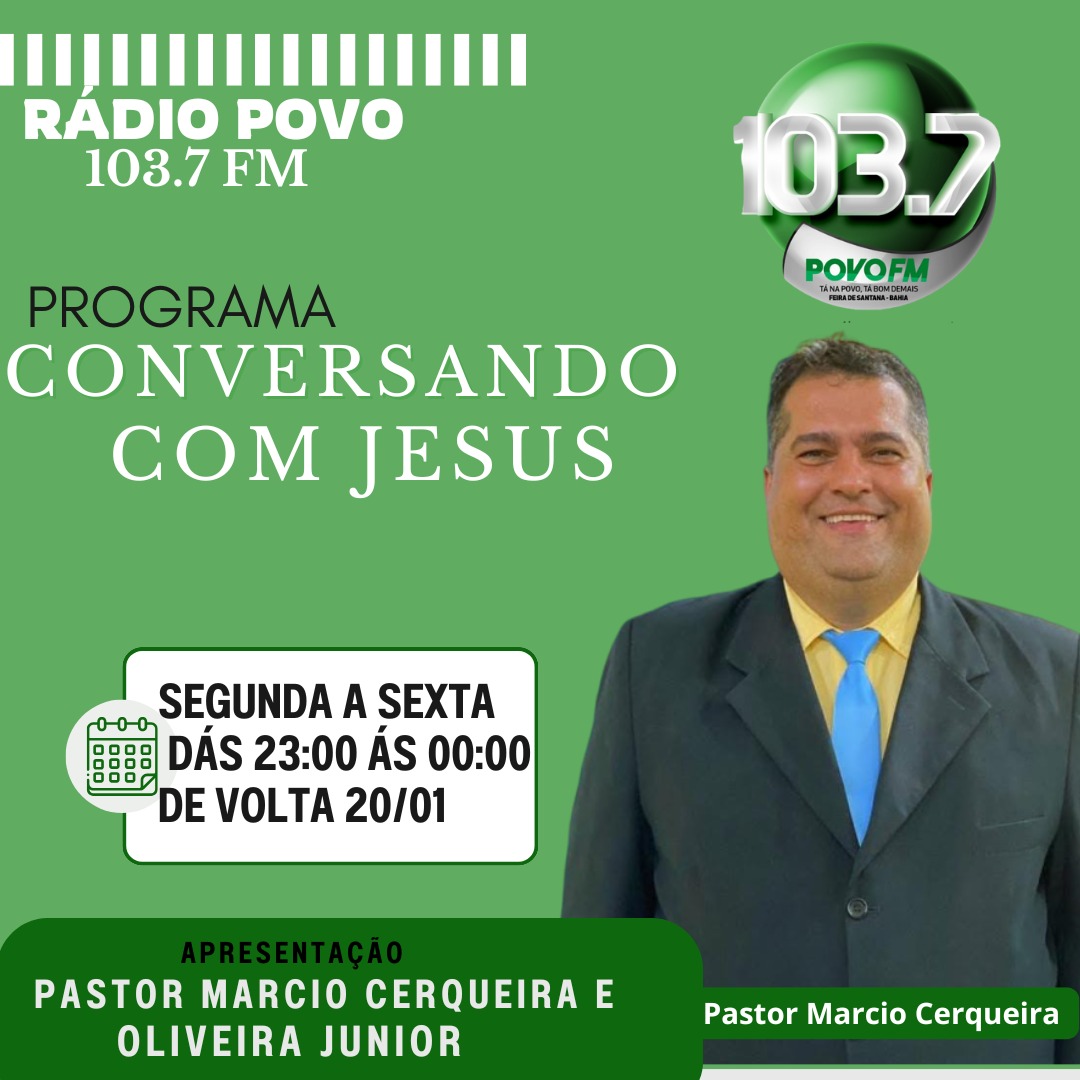 Em um momento de grande júbilo e manifestação da glória divina, Deus abre mais uma porta de vitórias para abençoar seu povo e conduzir milhares ao caminho da salvação. No próximo dia 20 de janeiro, a Rádio Povo FM de Feira de Santana apresenta a estreia de um programa que promete ser um farol na escuridão para muitos corações aflitos: “Conversando com Jesus”, comandado pelo Pastor Márcio Cerqueira, com a coapresentação de Oliveira Júnior.