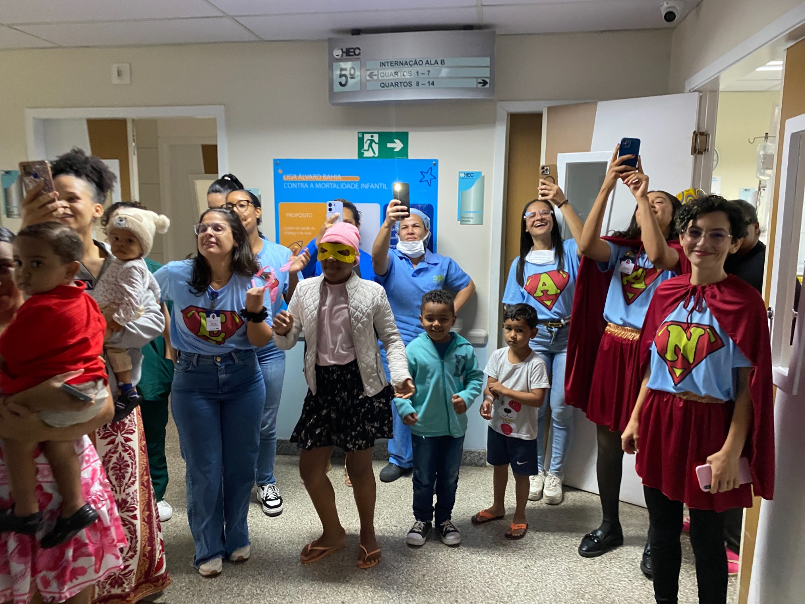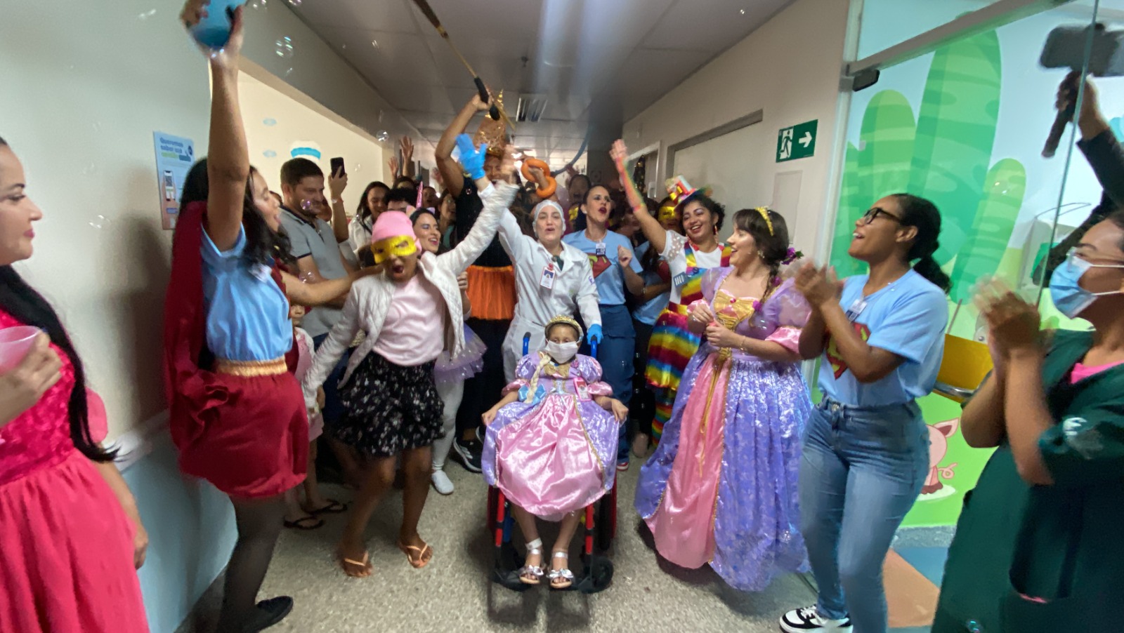 A atividade contou com colaboradores e voluntários caracterizados como princesas, super-heróis e personagens do universo infantil, levando leveza e descontração aos corredores do hospital e transformando o ambiente em um momento de alegria coletiva. O evento também contou com o apoio e a parceria da Câmara de Dirigentes Lojistas de Feira de Santana (CDL), CDL Jovem, do Grupo de Voluntários DoAção e de diversos voluntários que doaram brinquedos e participaram do cortejo animando as crianças.