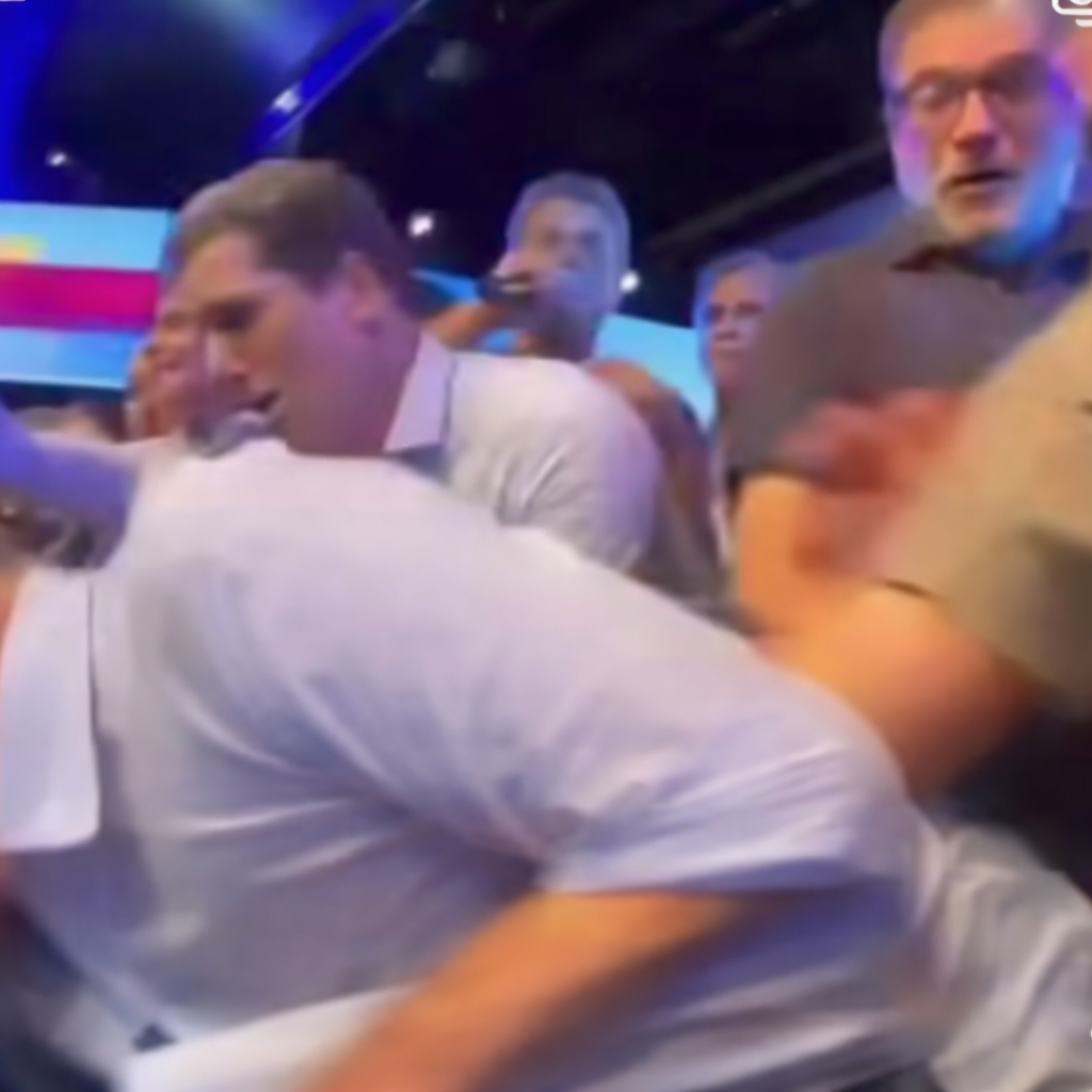 O prefeito de Feira de Santana, José Ronaldo de Carvalho, quase caiu do palco após um esbarrão — que acabou sendo interpretado como um empurrão — do humorista Renato Piaba, no momento em que ele era anunciado durante o evento político.