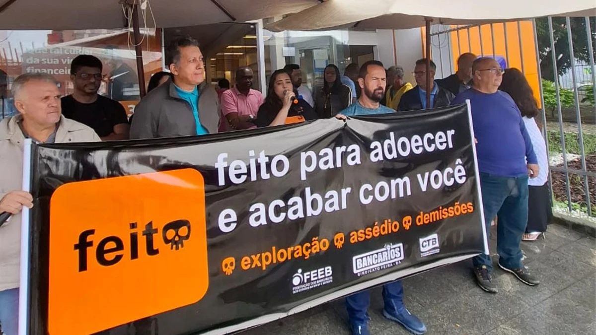 Logo na manhã desta segunda-feira (14), bancários da cidade se mobilizaram em frente à agência para protestar contra a medida. Em clima de resistência, cartazes, palavras de ordem e discursos emocionados marcaram o ato que reafirma a garra dos trabalhadores bancários de Feira de Santana — reconhecidos em todo o estado como combativos, aguerridos e vigilantes contra os abusos dos banqueiros.