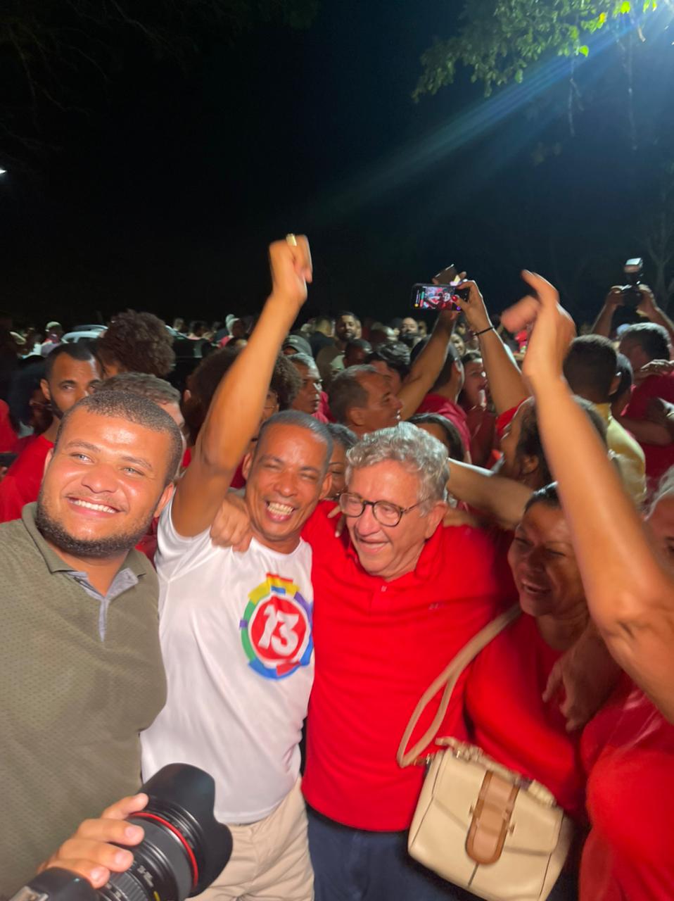 “Olá, meus amigos e minhas amigas de Feira de Santana, estou chegando neste momento em Camaçari para participar da comemoração do 44. Com certeza vai dar 44 na cabeça, com Flávio Matos prefeito de Camaçari!”, disse Lulinha.