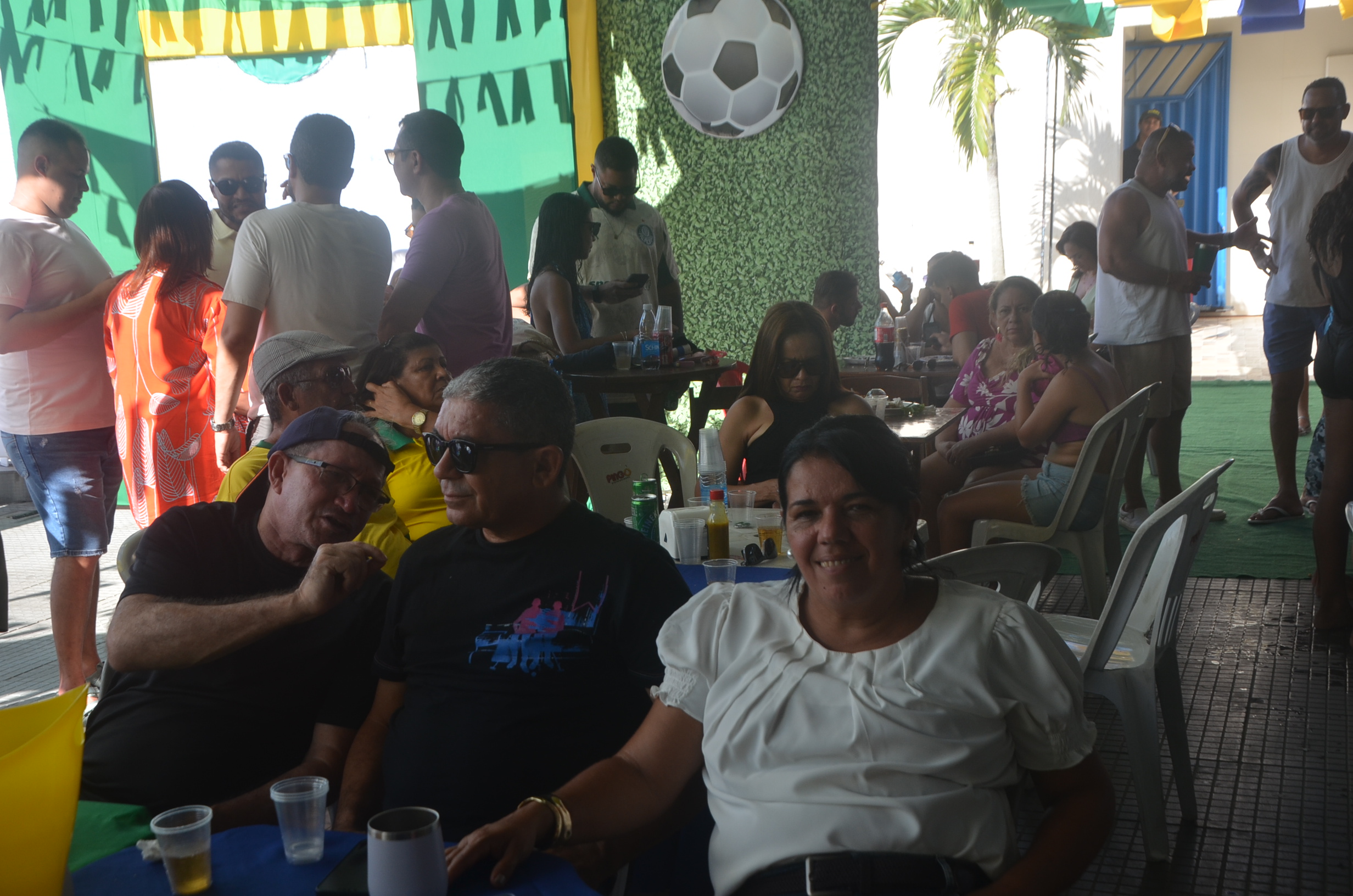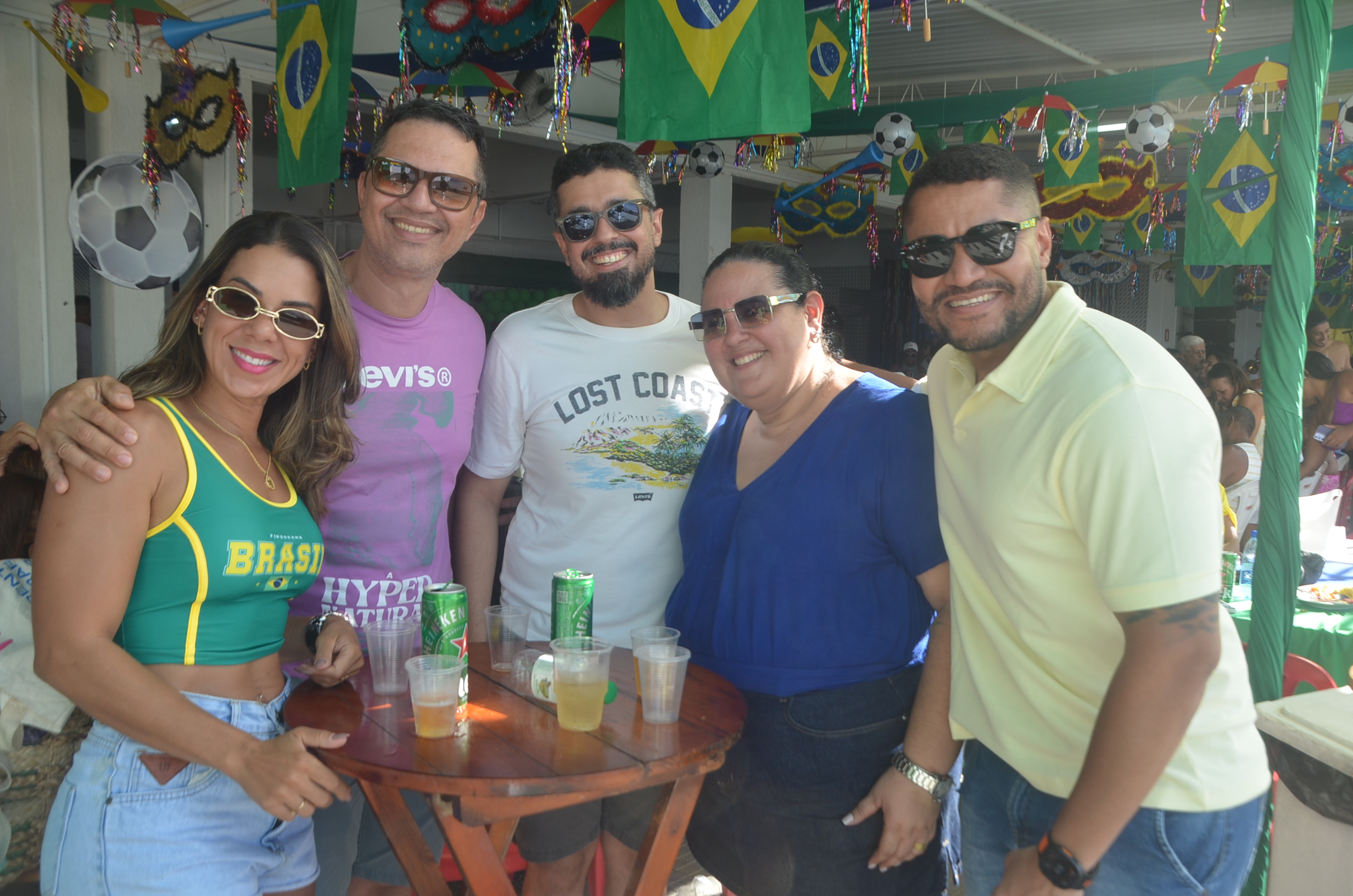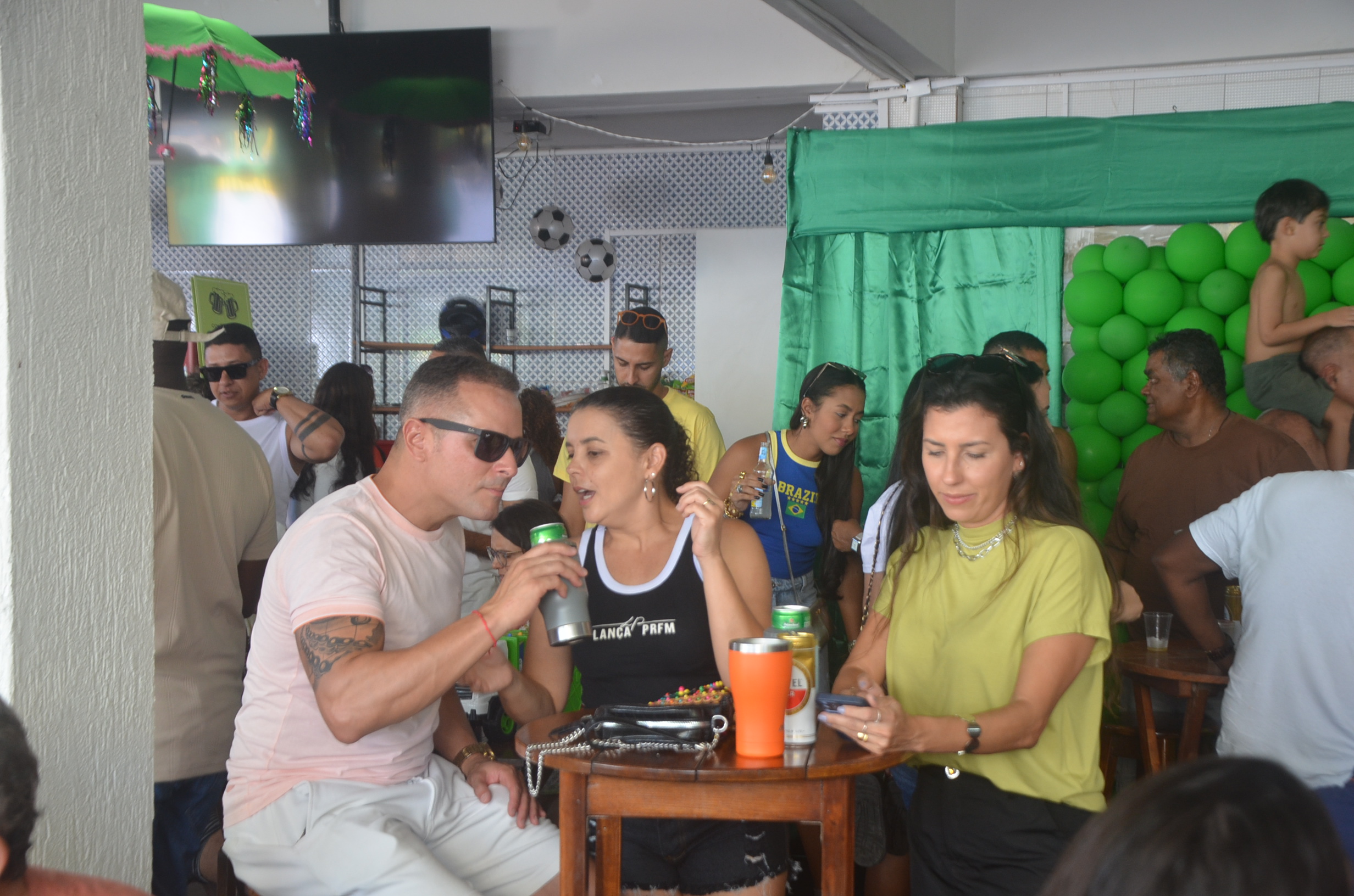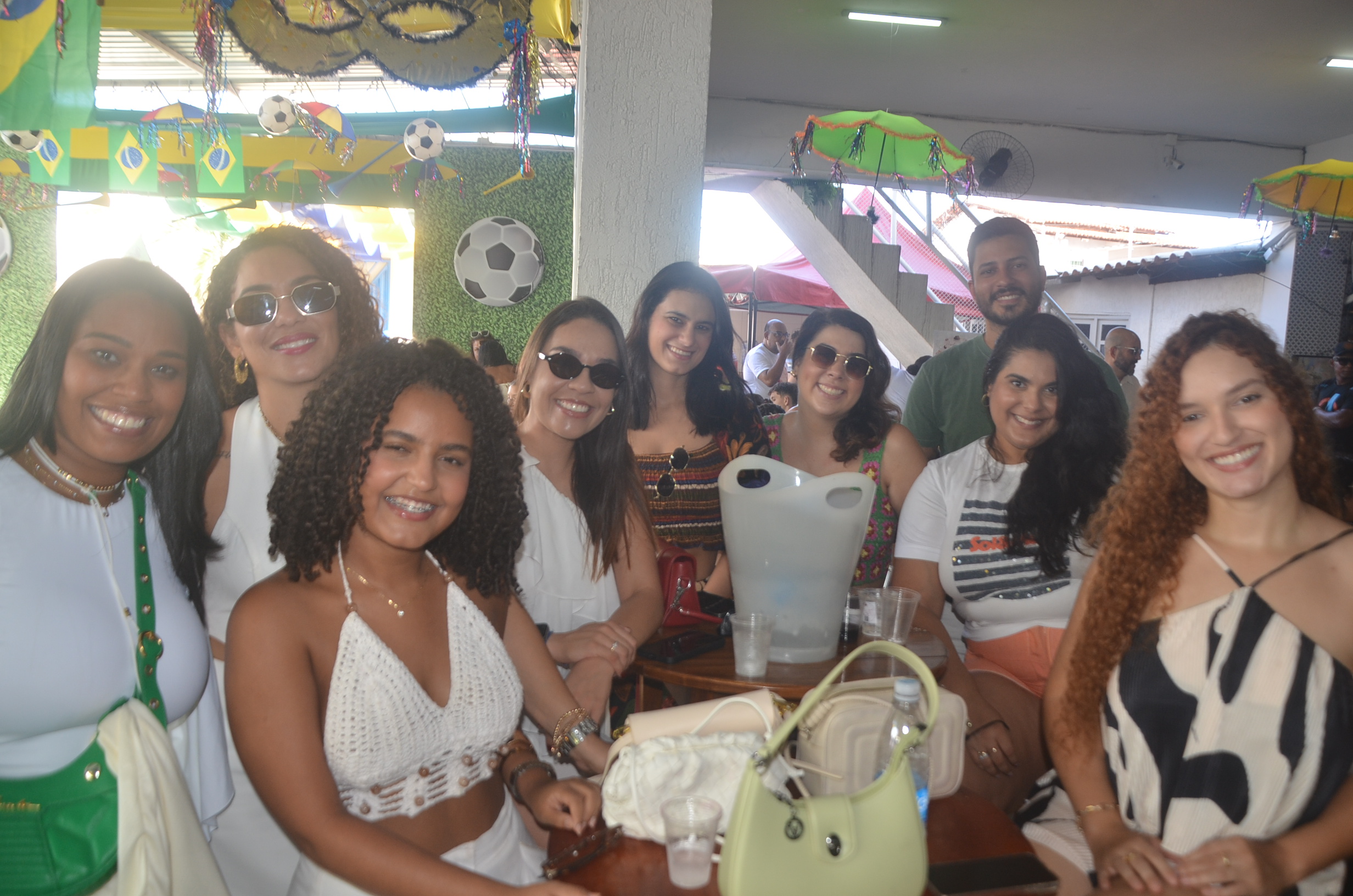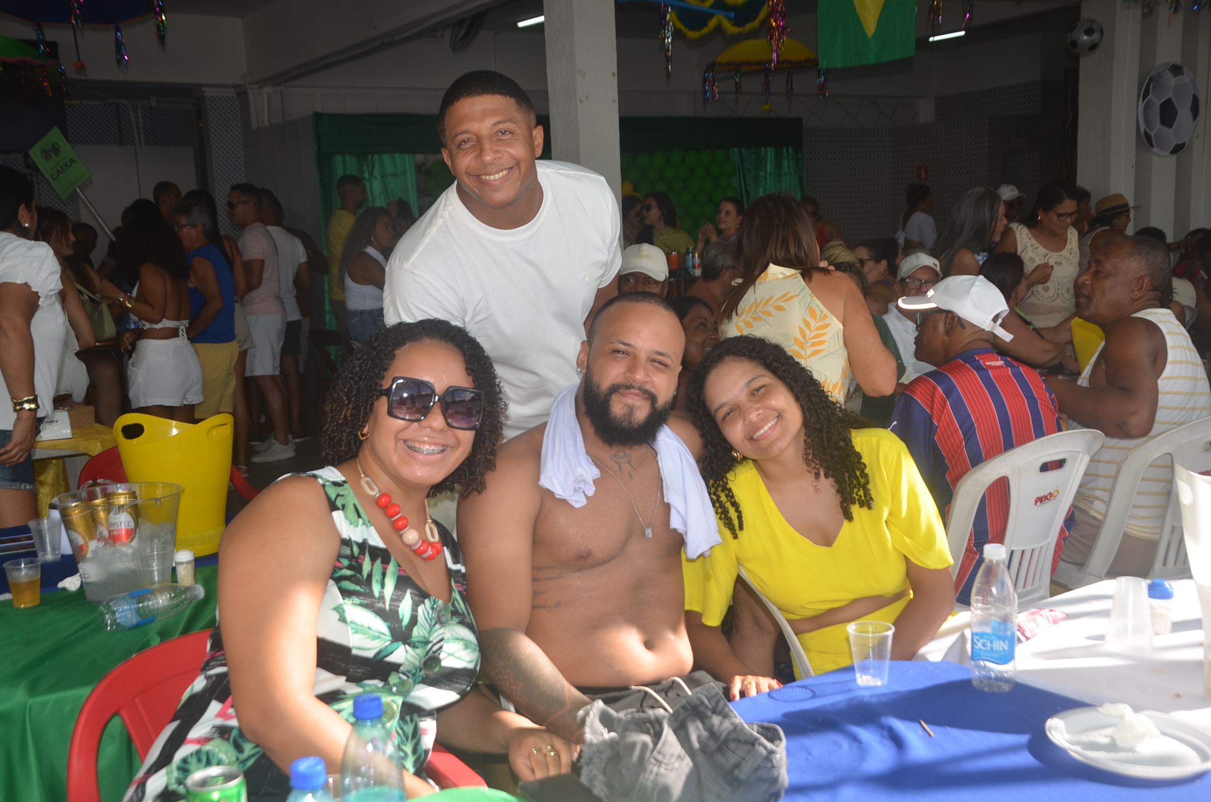 E para deixar o clima ainda mais especial e contagiante, o ambiente estava impecavelmente decorado nas cores verde e amarelo! A decoração foi um verdadeiro espetáculo à parte, totalmente ambientada nas cores da Bandeira do Brasil, simbolizando e antecipando com muito estilo os festejos da Copa do Mundo, como dizia o próprio tema da festa: “Esperando a Copa”. Era impossível não se sentir emocionado e cheio de orgulho nacional ao entrar no espaço.