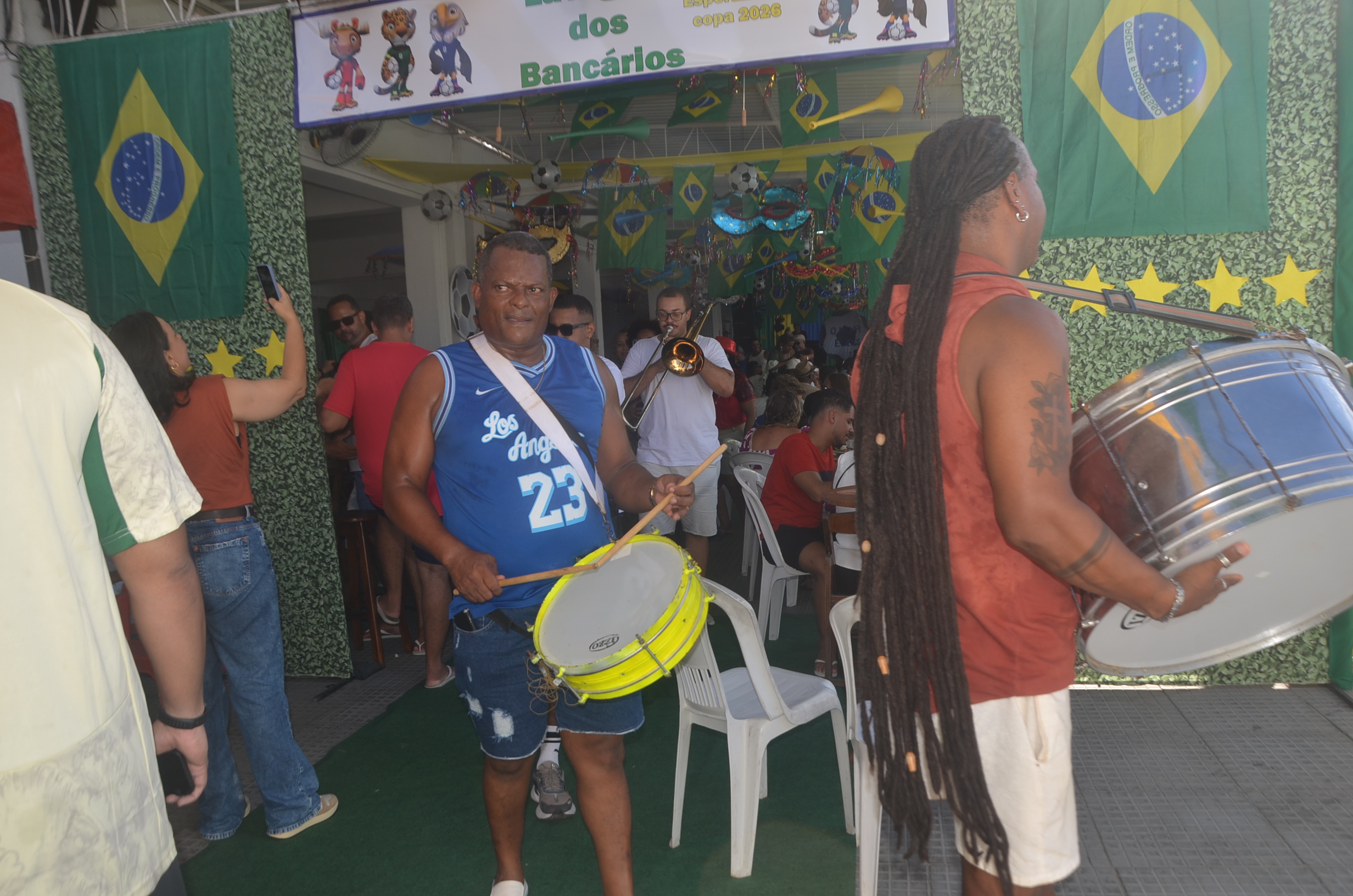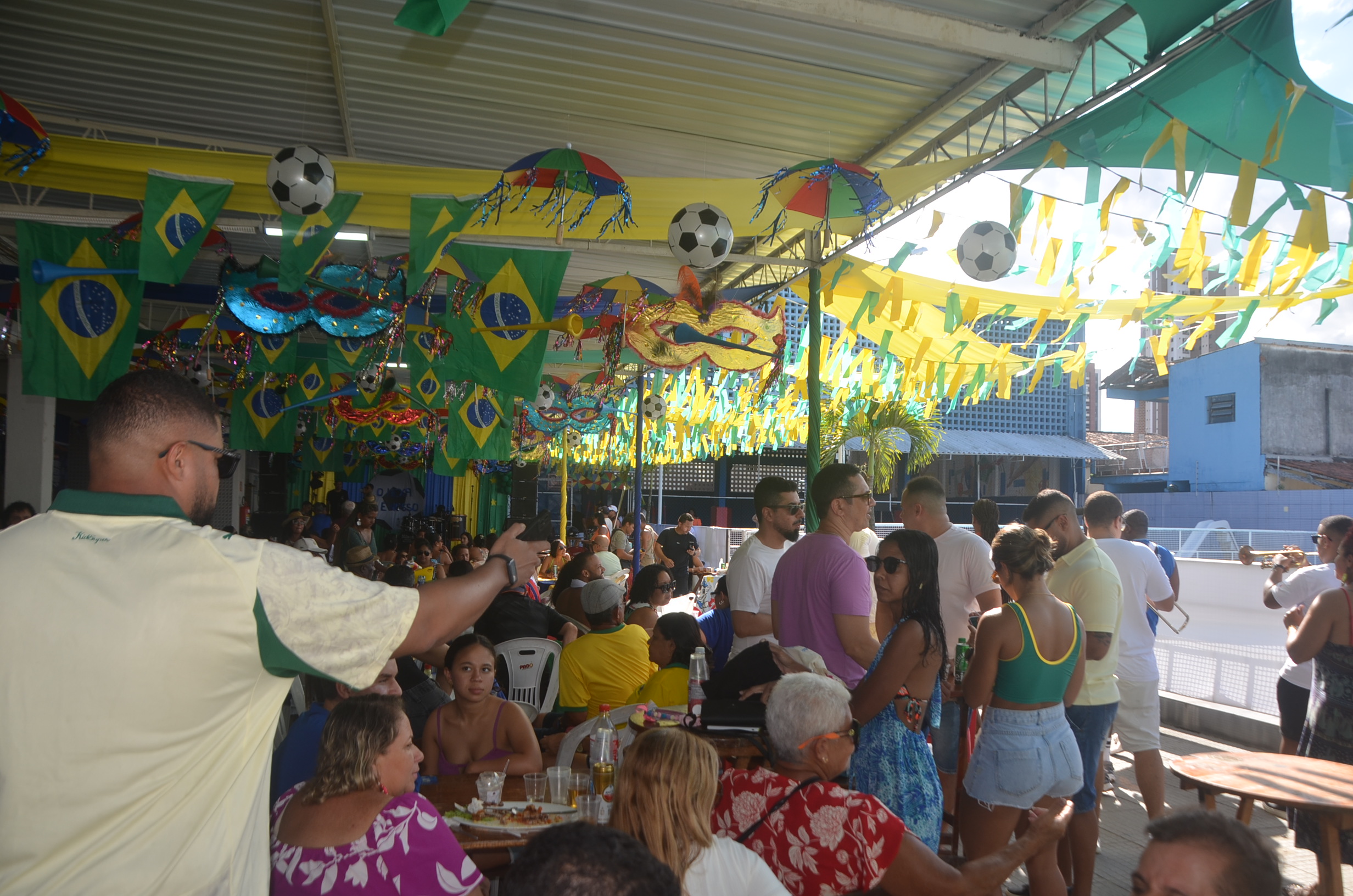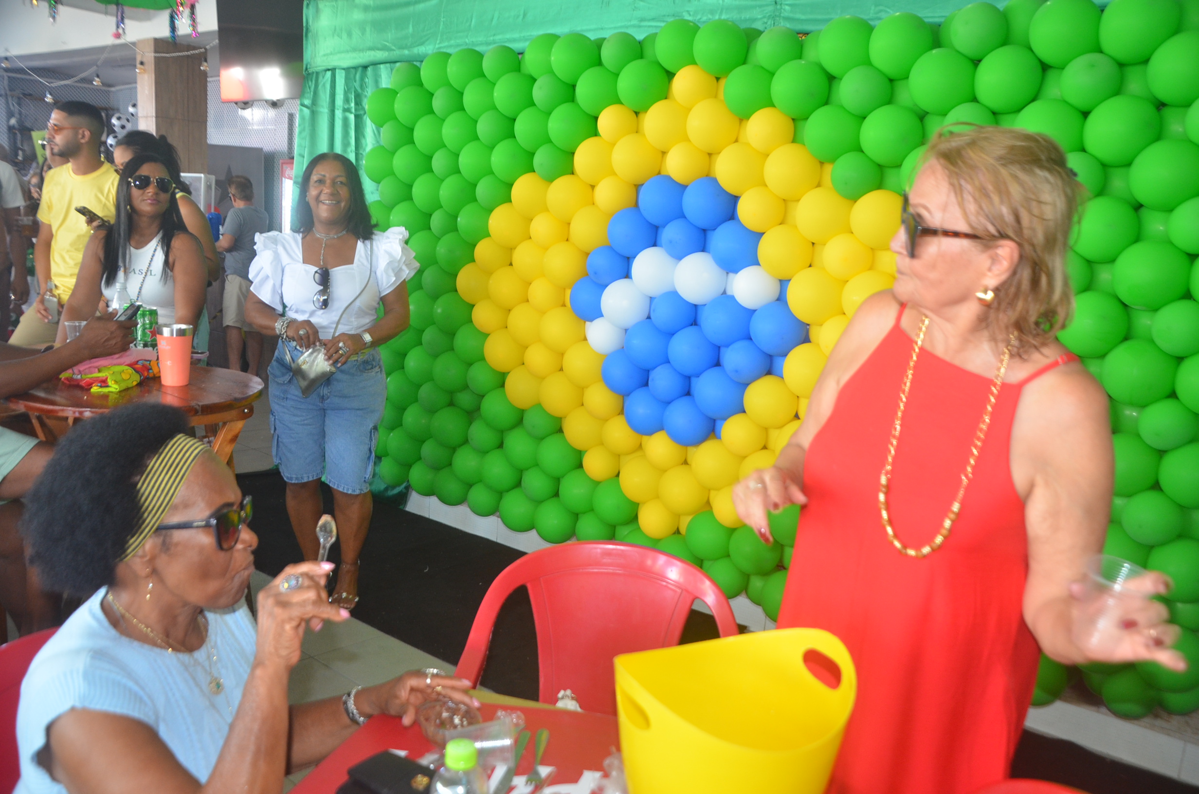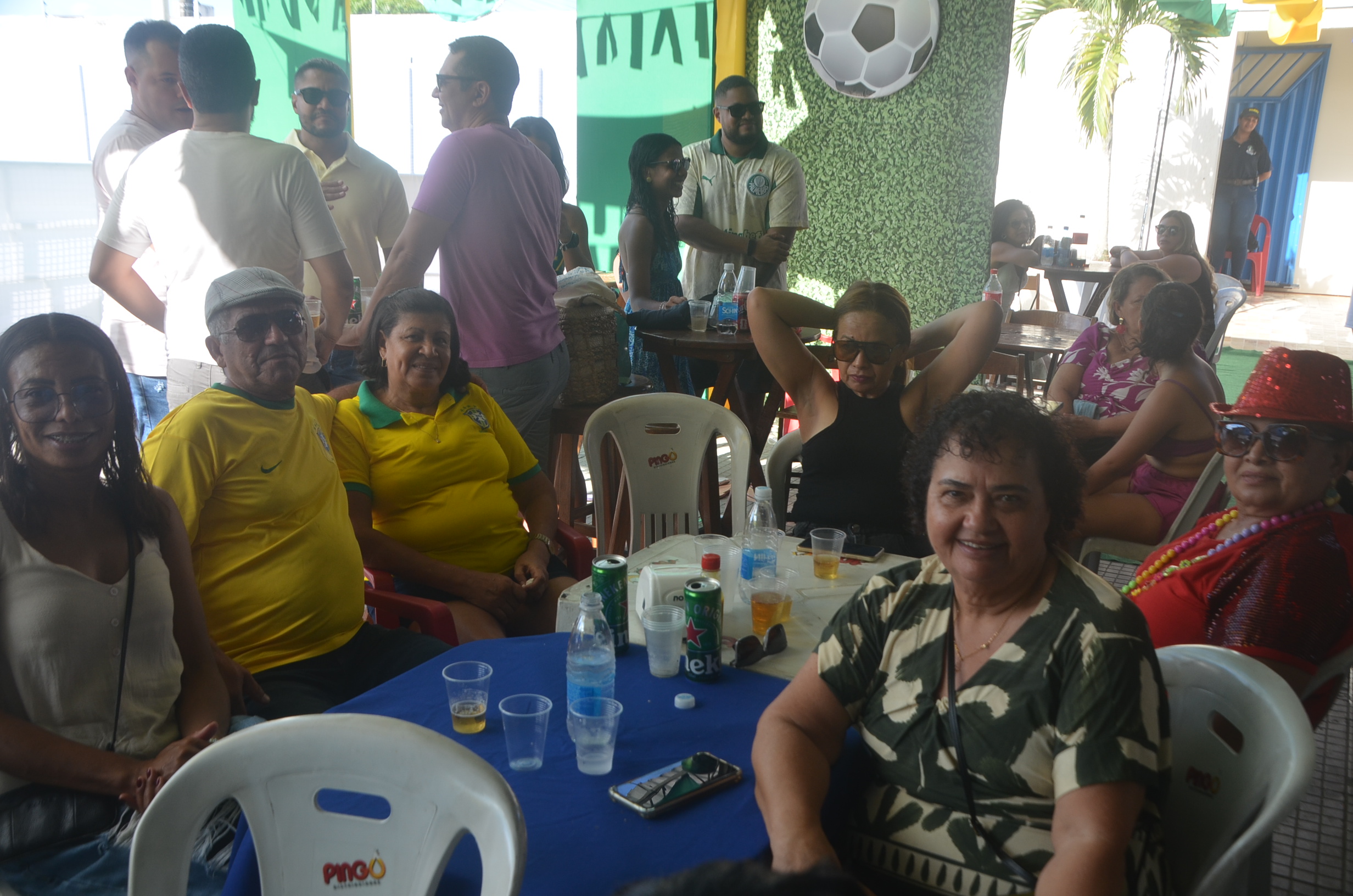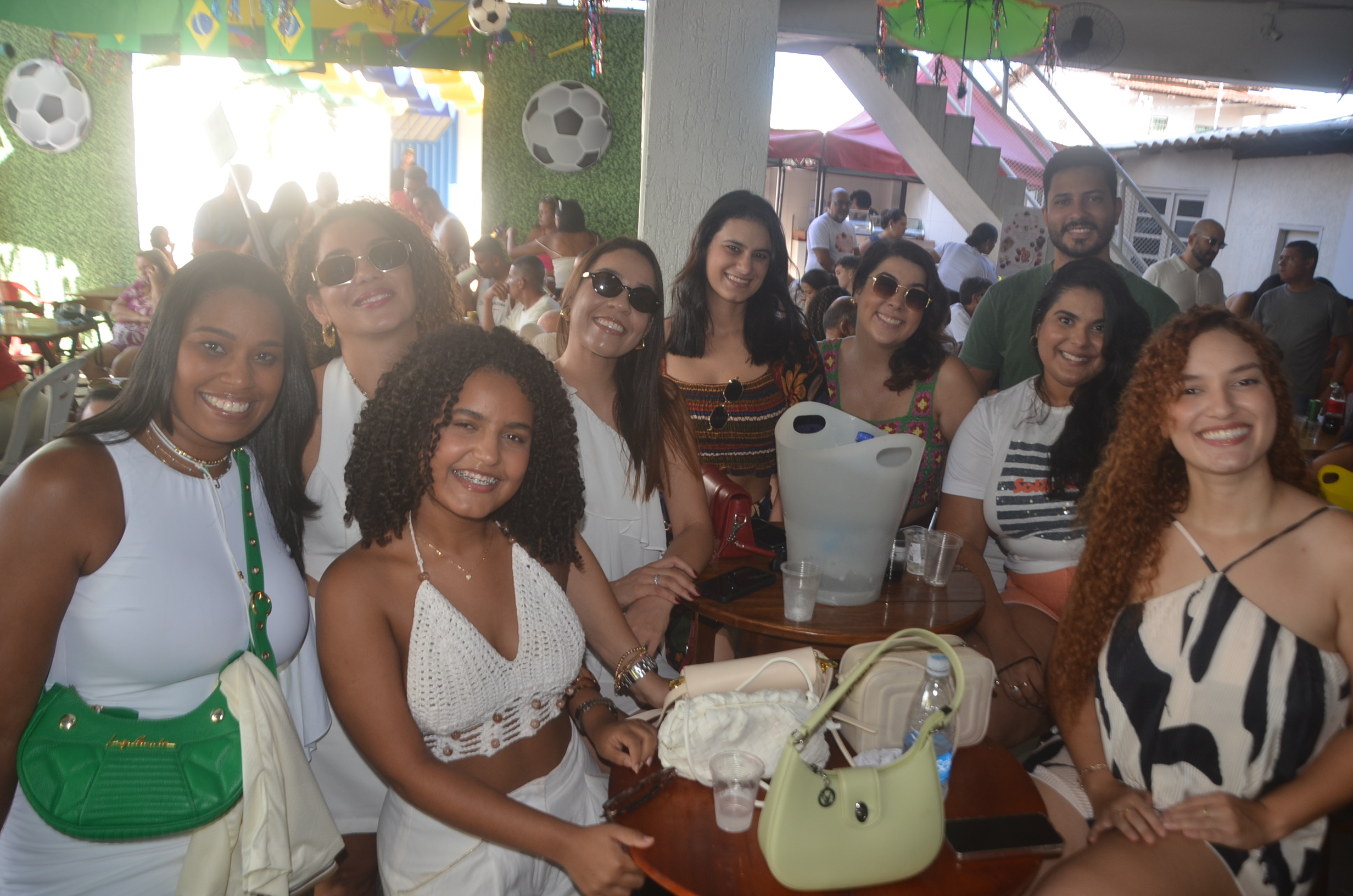 E para deixar o clima ainda mais especial e contagiante, o ambiente estava impecavelmente decorado nas cores verde e amarelo! A decoração foi um verdadeiro espetáculo à parte, totalmente ambientada nas cores da Bandeira do Brasil, simbolizando e antecipando com muito estilo os festejos da Copa do Mundo, como dizia o próprio tema da festa: “Esperando a Copa”. Era impossível não se sentir emocionado e cheio de orgulho nacional ao entrar no espaço.