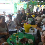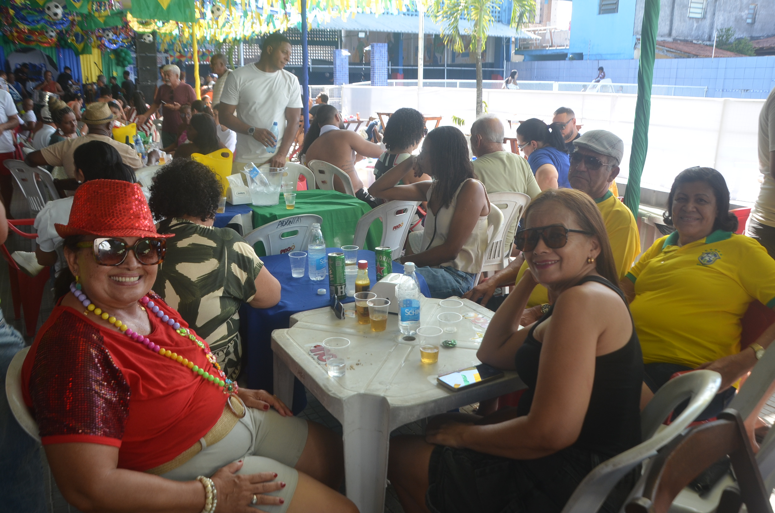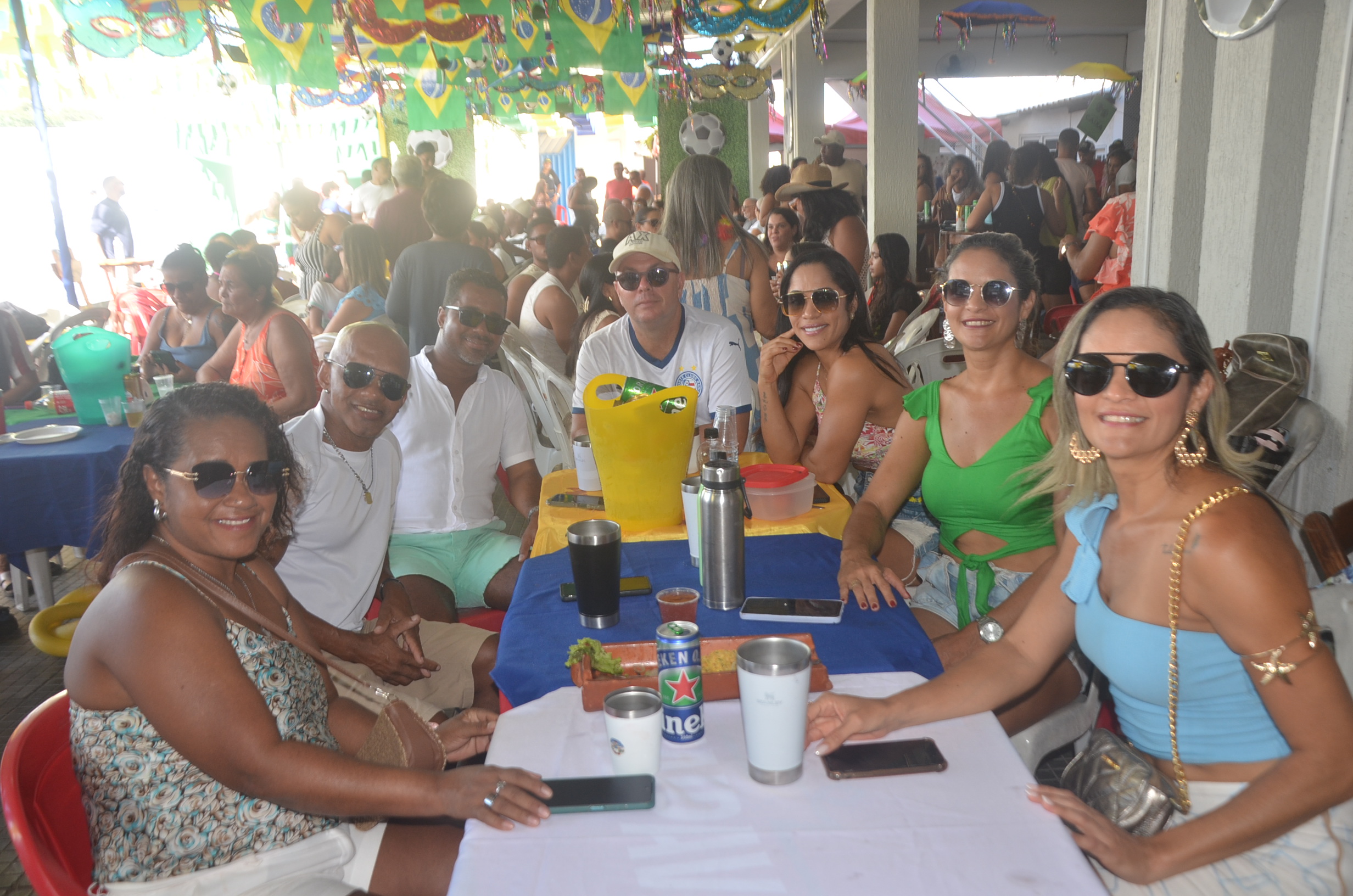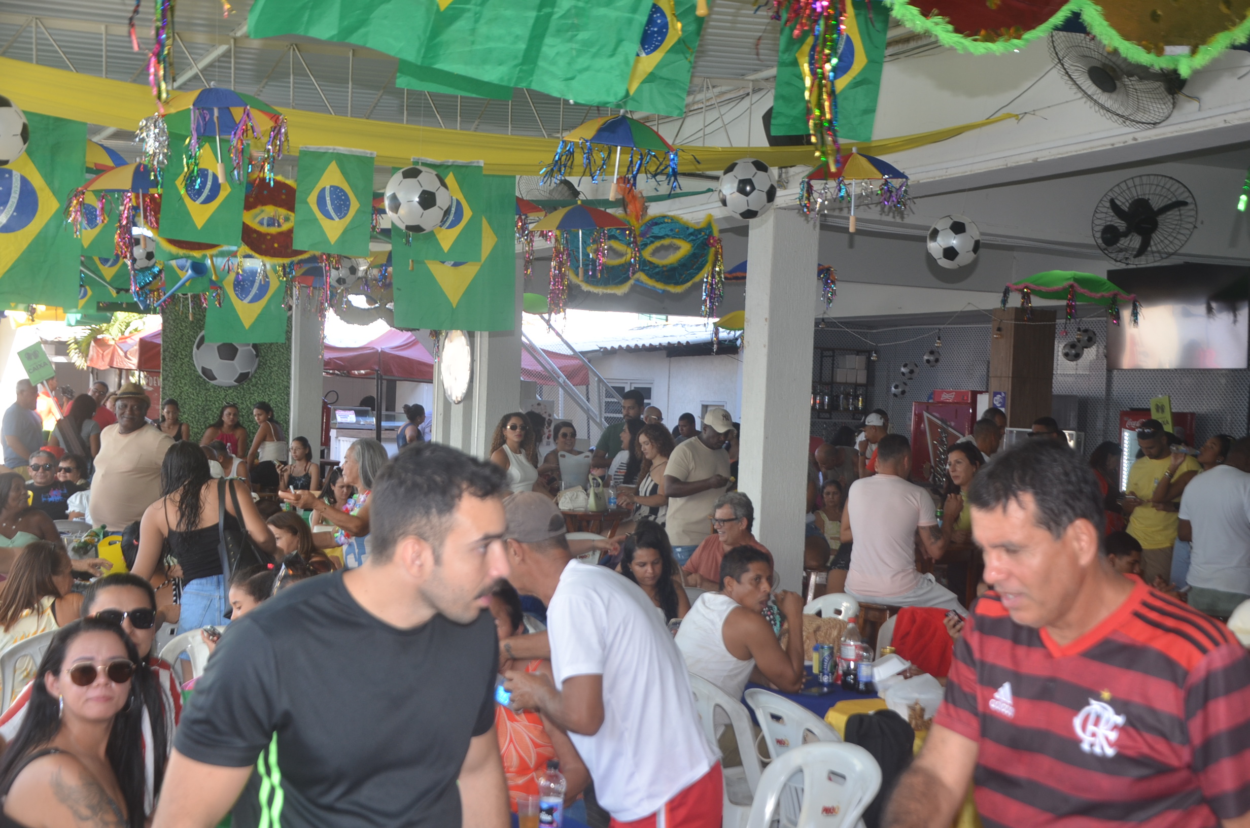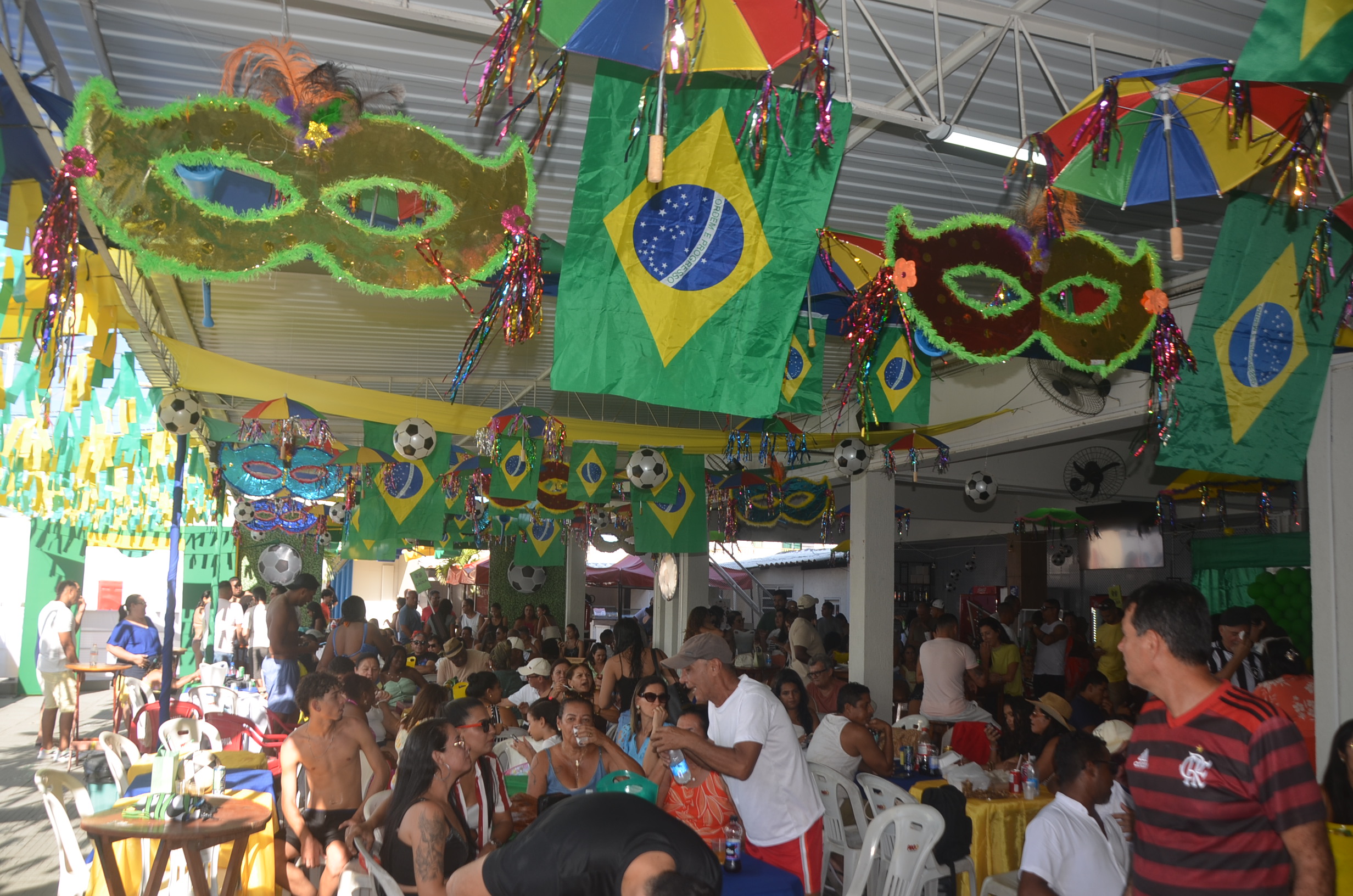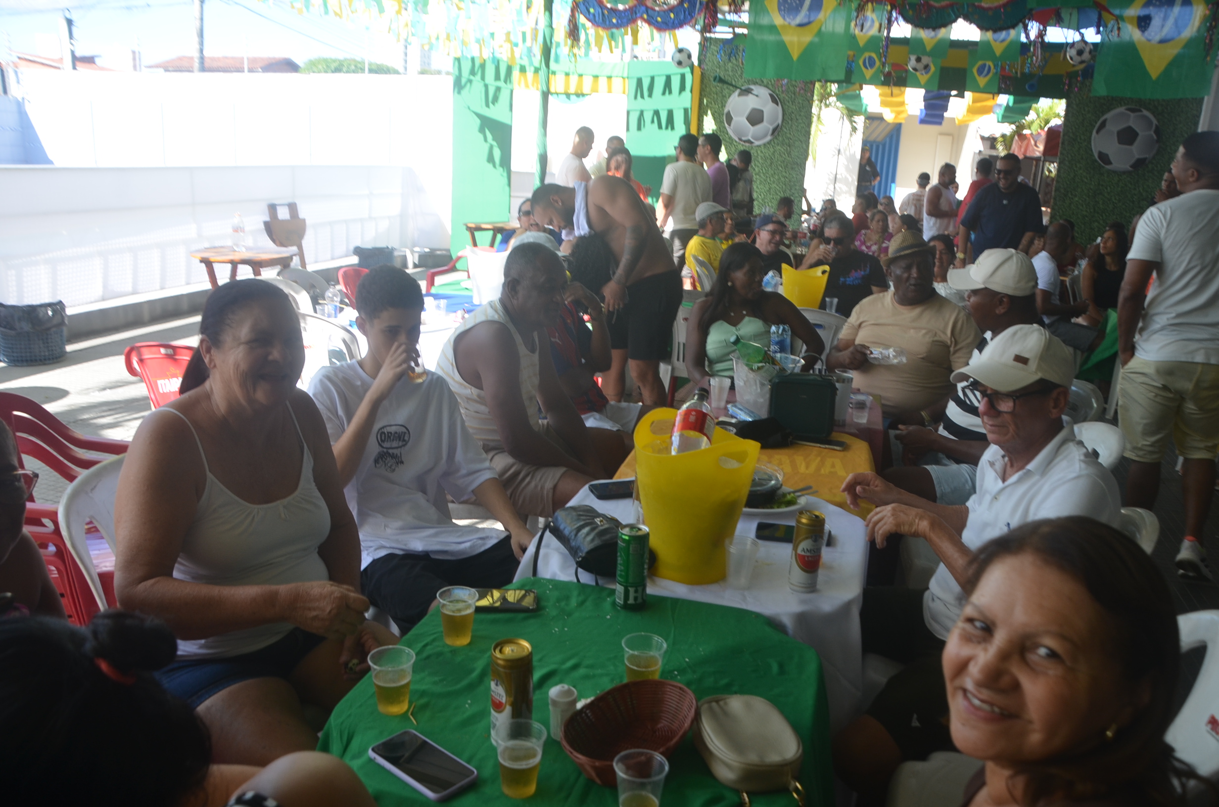 E para deixar o clima ainda mais especial e contagiante, o ambiente estava impecavelmente decorado nas cores verde e amarelo! A decoração foi um verdadeiro espetáculo à parte, totalmente ambientada nas cores da Bandeira do Brasil, simbolizando e antecipando com muito estilo os festejos da Copa do Mundo, como dizia o próprio tema da festa: “Esperando a Copa”. Era impossível não se sentir emocionado e cheio de orgulho nacional ao entrar no espaço.