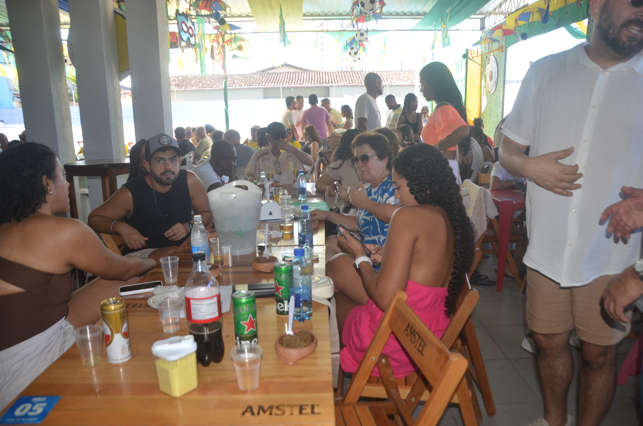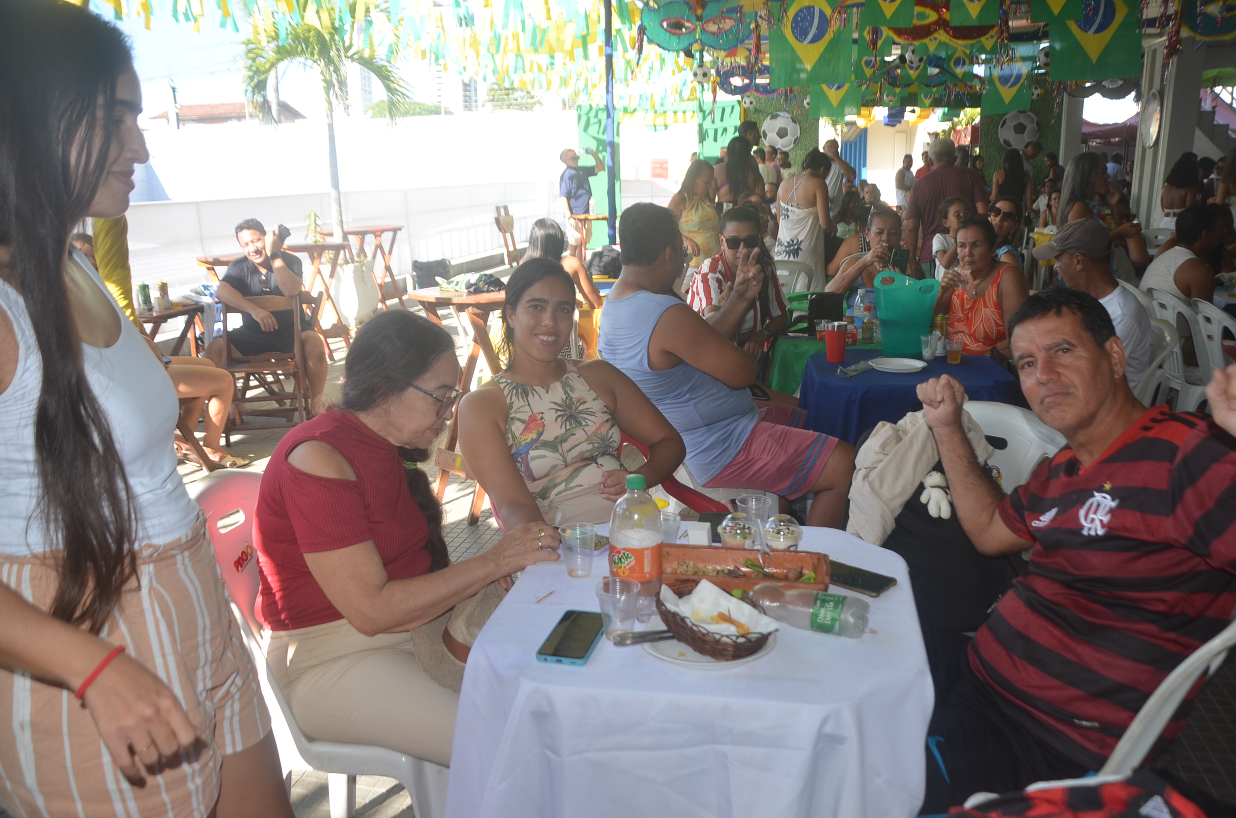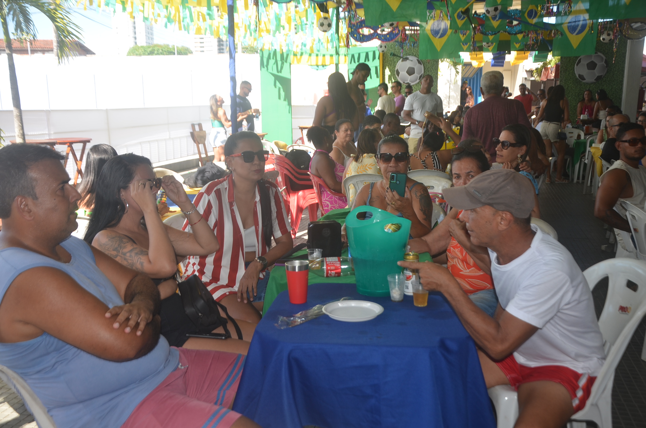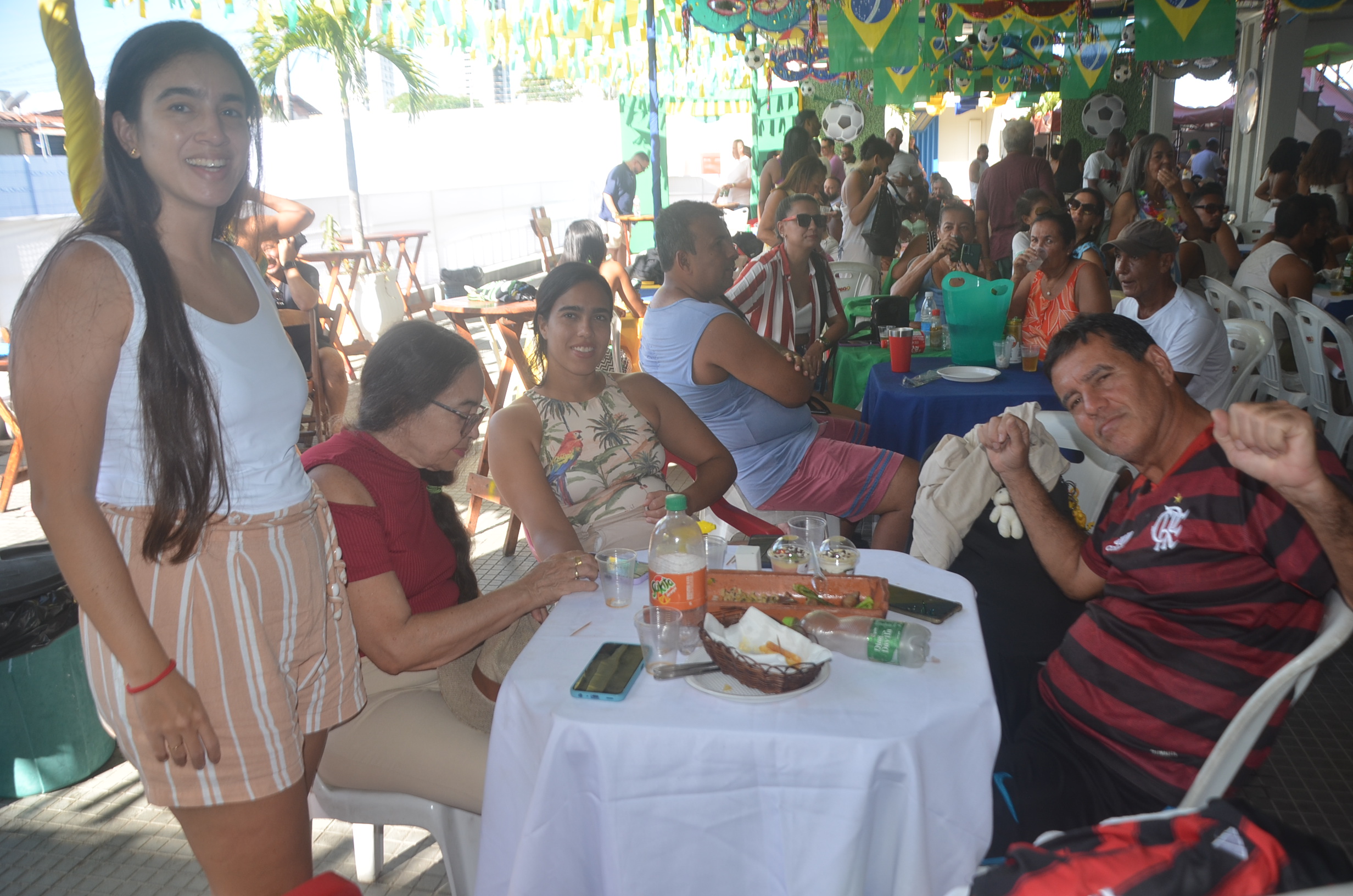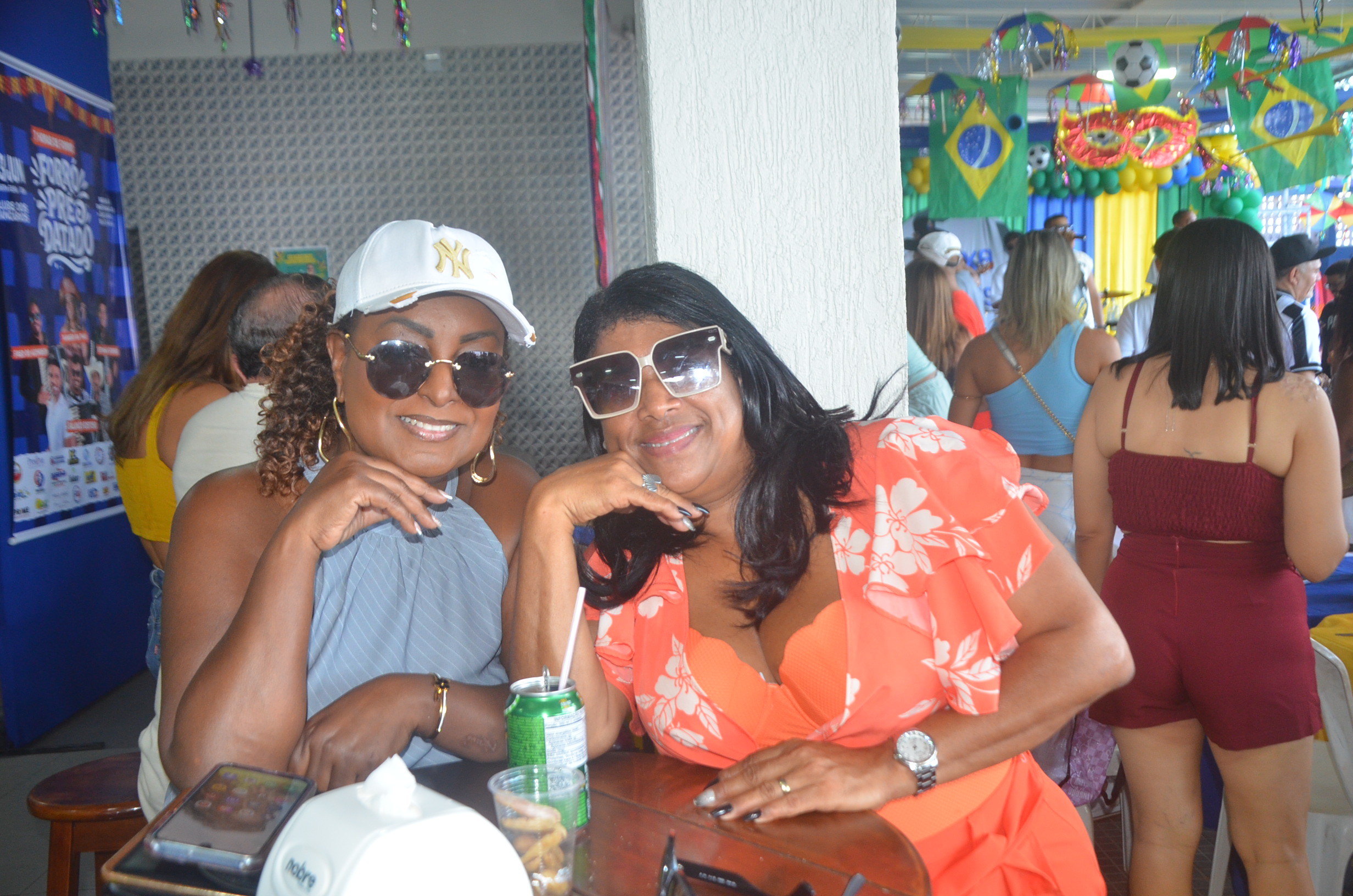 E para deixar o clima ainda mais especial e contagiante, o ambiente estava impecavelmente decorado nas cores verde e amarelo! A decoração foi um verdadeiro espetáculo à parte, totalmente ambientada nas cores da Bandeira do Brasil, simbolizando e antecipando com muito estilo os festejos da Copa do Mundo, como dizia o próprio tema da festa: “Esperando a Copa”. Era impossível não se sentir emocionado e cheio de orgulho nacional ao entrar no espaço.