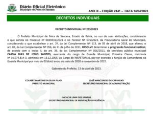 Veja a publicação feita no Diário Oficial do município desta sexta.
