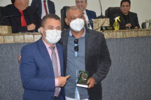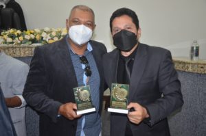 O radialista Osvaldo Cruz recebeu na manhã desta terça-feira (21), das mãos do vereador Galeguinho SPA, o Troféu Arnold Silva, referente a escolha do site Rota da Informação como o melhor do ano de 2021.