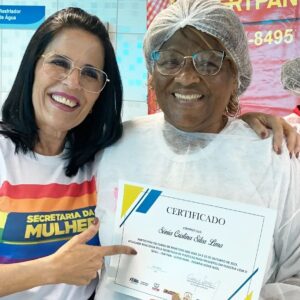 “É com este sentimento de dever cumprido que finalizamos o curso de produção de panetone, na manhã de hoje (28) . É maravilhoso ver a esperança nos olhares de cada mulher que esteve presente durante esses dias. Elas se esforçaram, colocaram a mão na massa, com muita dedicação e empenho. Agradeço aos parceiros e amigos como, SENAI de Feira de Santana, Fertpan Panificadora e Confeitaria , Padaria Jeová Nissi e Supermercado Pane, por oportunizar para essas mulheres sua autonomia financeira, para que elas sejam protagonistas da sua história”, agradeceu Gerusa durante ato da conclusão de mais um curso promovido pela Secretaria Municipal da Mulher de Feira de Santana com a entrega dos certificados.