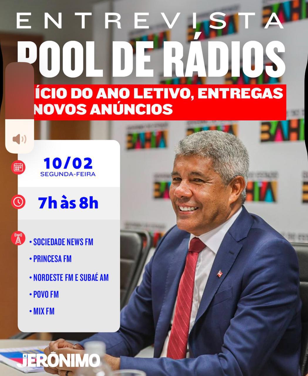 Durante o Pool de Rádios na manhã desta segunda-feira (10), o governador da Bahia, Jerônimo Rodrigues (PT), reafirmou seu compromisso com Feira de Santana e anunciou que pretende se reunir com o prefeito José Ronaldo (União Brasil) para discutir avanços na saúde do município. Entre as propostas, está a ampliação do projeto do Hospital Municipal e o reforço ao Hospital Inácia Pinto, conhecido como Hospital da Mulher.