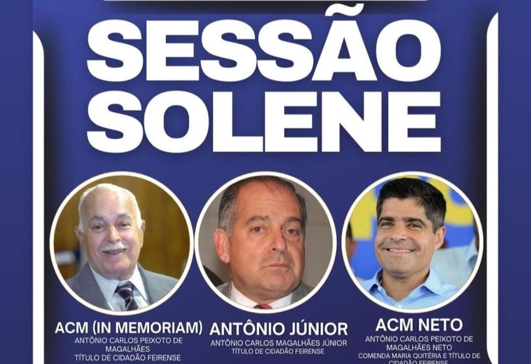 Durante a cerimônia, ACM Neto, atual vice-presidente nacional do União Brasil e ex-prefeito de Salvador, será agraciado com os títulos de Cidadão Feirense e da Comenda Maria Quitéria. Além dele, Antônio Carlos Magalhães Júnior também receberá o título de Cidadão Feirense em reconhecimento ao legado deixado por seu pai e à continuidade do compromisso da família com o desenvolvimento da Bahia.