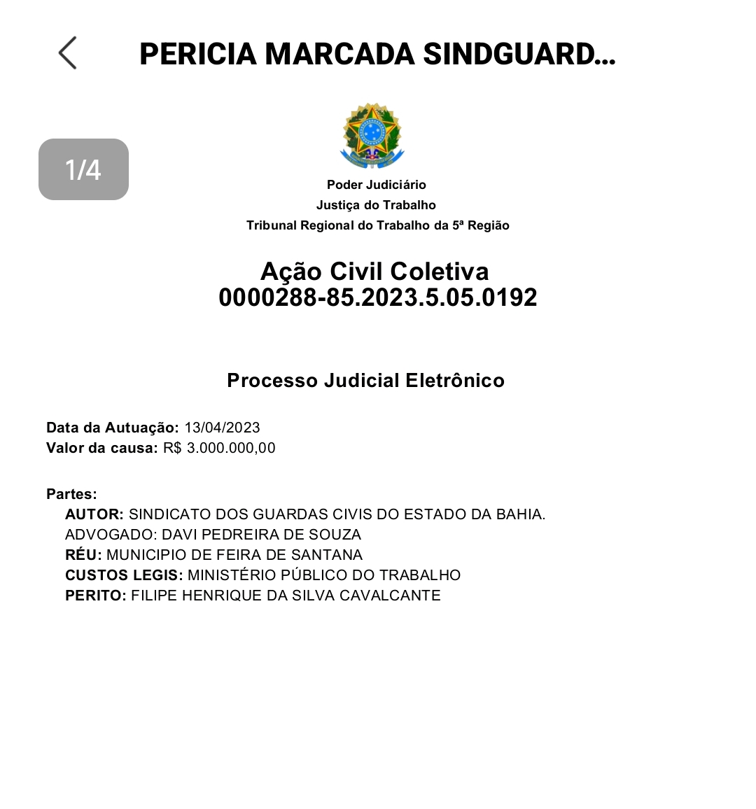 A Justiça do Trabalho autorizou a realização de uma perícia técnica em diversos postos de trabalho utilizados pelos Guardas Municipais de Feira de Santana, após denúncia formalizada pelo Sindicato dos Guardas Civis do Estado da Bahia (Sindguarda). A ação civil coletiva, de número 0000288-85.2023.5.05.0192, tramita na 2ª Vara do Trabalho de Feira de Santana e tem como réu o Município, sob a gestão do prefeito José Ronaldo de Carvalho.