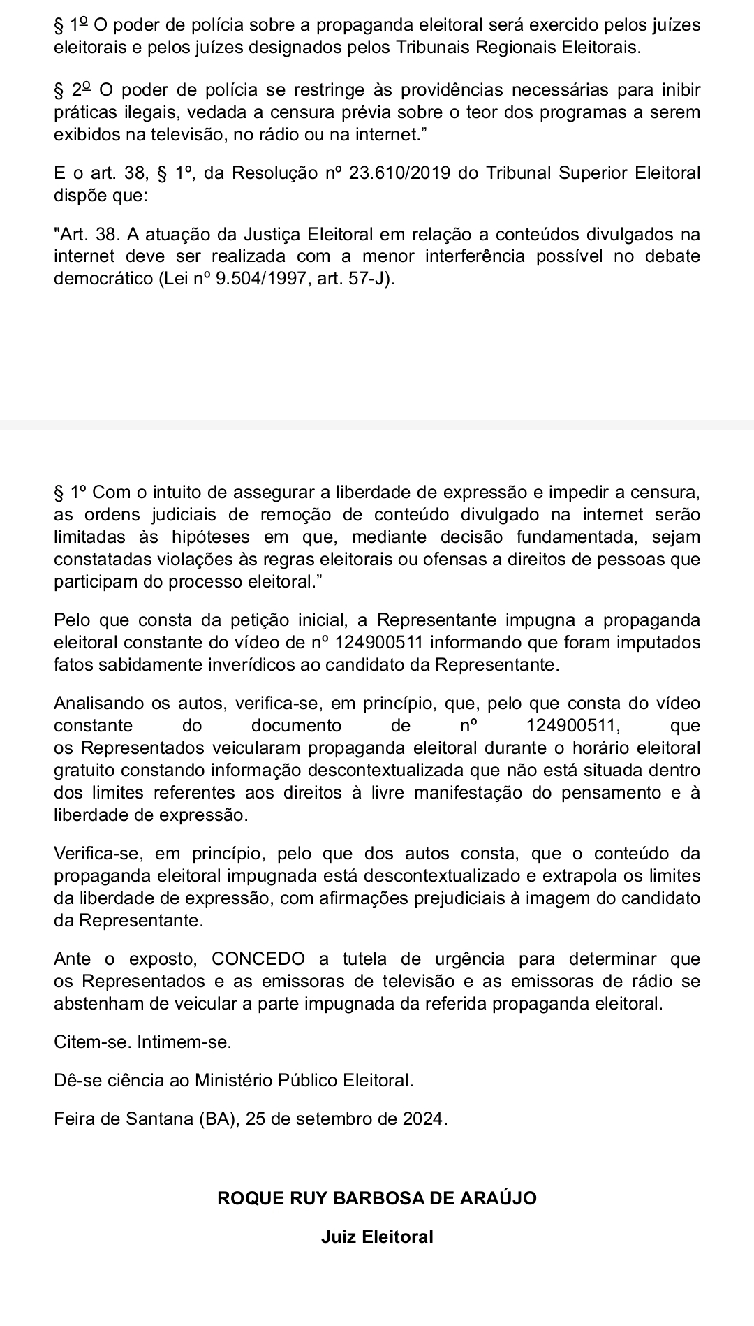 Na reta final da campanha eleitoral, a disputa pela prefeitura de Feira de Santana ganhou mais um capítulo polêmico. A Justiça condenou novamente a coligação de Zé Ronaldo, determinando a suspensão de propagandas enganosas veiculadas sobre o Hospital Geral Clériston Andrade e o sistema estadual de regulação. A decisão visa manter a integridade do processo eleitoral e combater a propagação de informações falsas.
