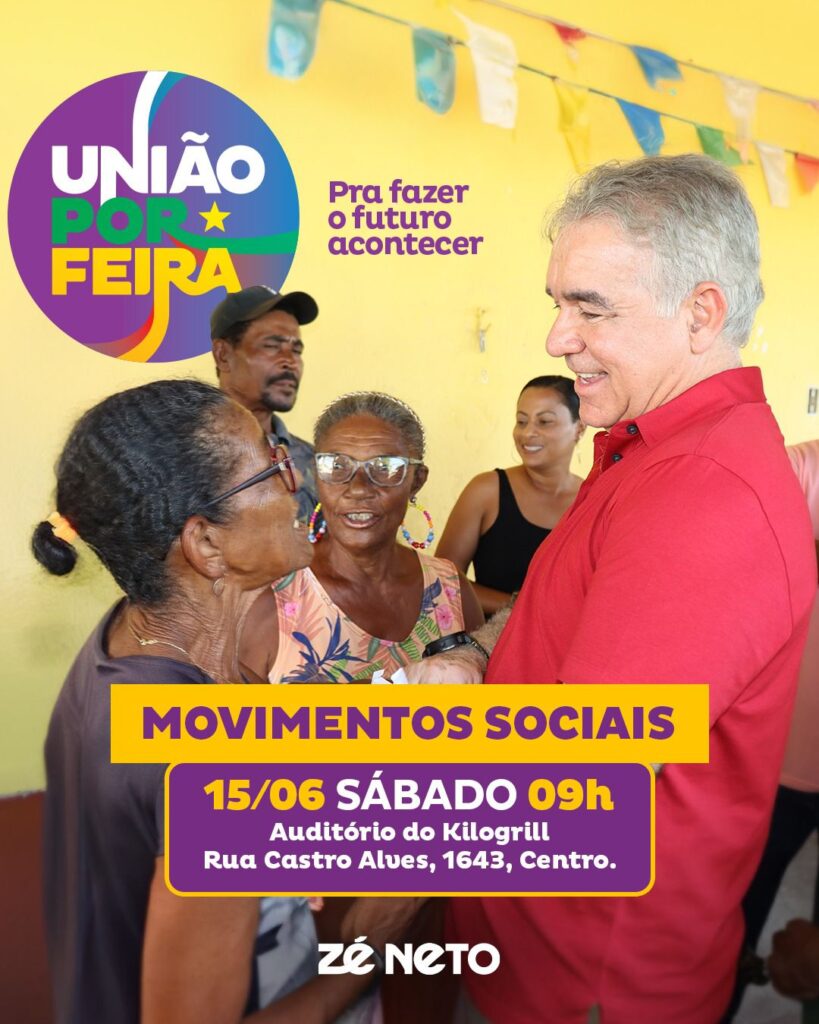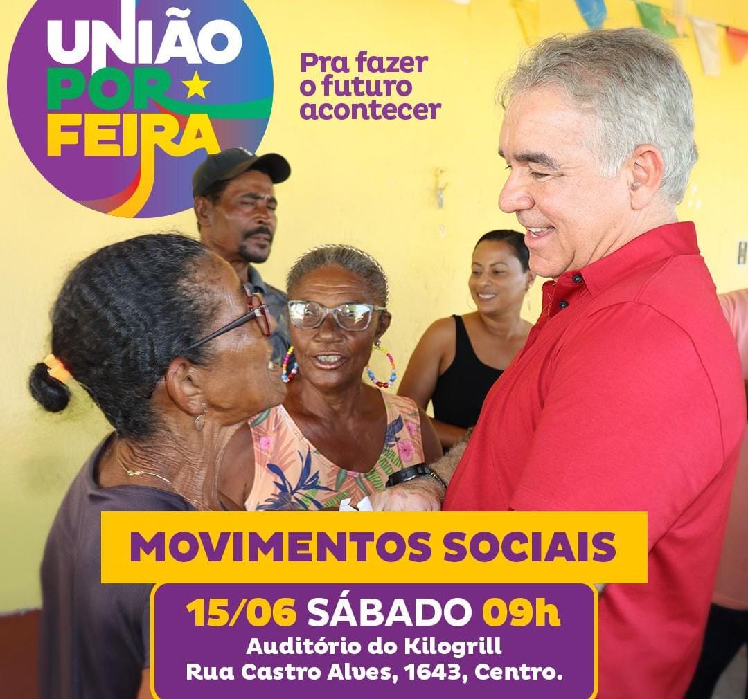 O Conselho Político do Movimento União por Feira, da base aliada (PT, PCdoB, PV, PP, PSOL, Rede, Avante, Podemos, PSB, PSD e MDB) ao pré-candidato Zé Neto, vai debater futuro da cidade com os movimentos sociais do município neste sábado (15).