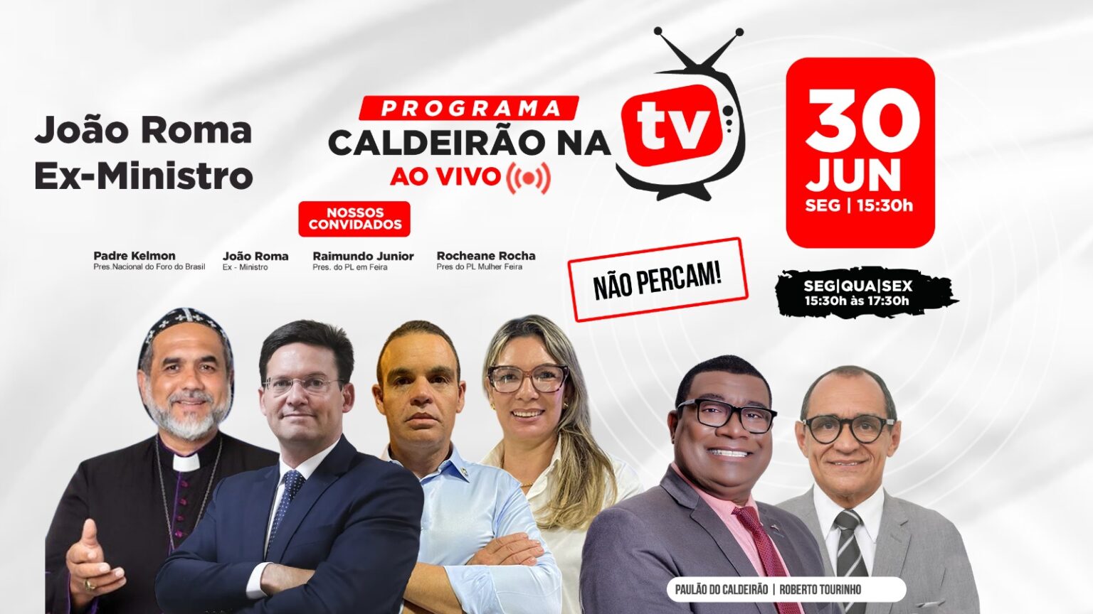 Sob o comando dos experientes radialistas Paulão e Roberto Tourinho, o programa recebe dois convidados de grande repercussão: o ex-presidenciável Padre Kelmon e o ex-ministro da Cidadania João Roma. A presença dos dois promete esquentar o debate político e atrair os olhares atentos de toda a Bahia.