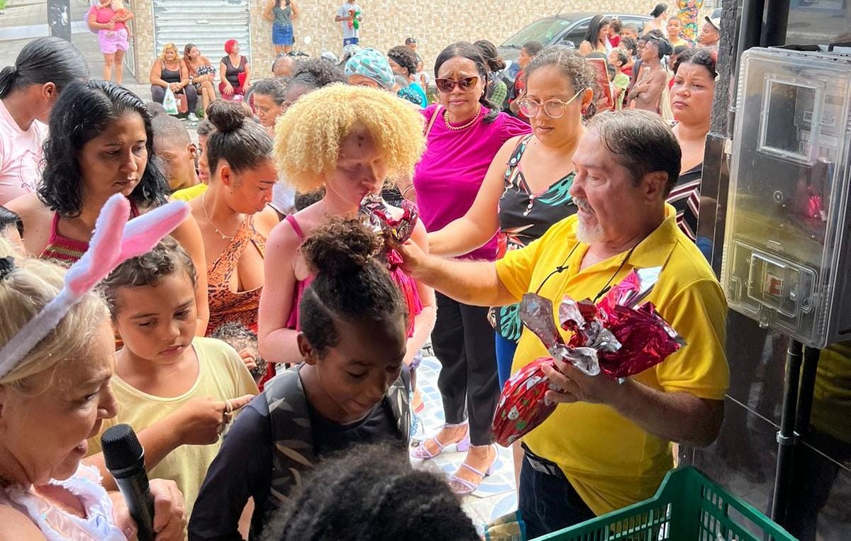 No bairro Jardim Cruzeiro, em Feira de Santana, a Páscoa deste ano foi marcada por uma generosa distribuição de chocolates pelas mãos do empresário Nelson Roberto, mais conhecido carinhosamente como Rei Nelsinho, e sua irmã Dalva Roberta. Enquanto muitos se reuniam em família para celebrar a data, eles decidiram espalhar um pouco mais de doçura na comunidade, especialmente para as crianças.