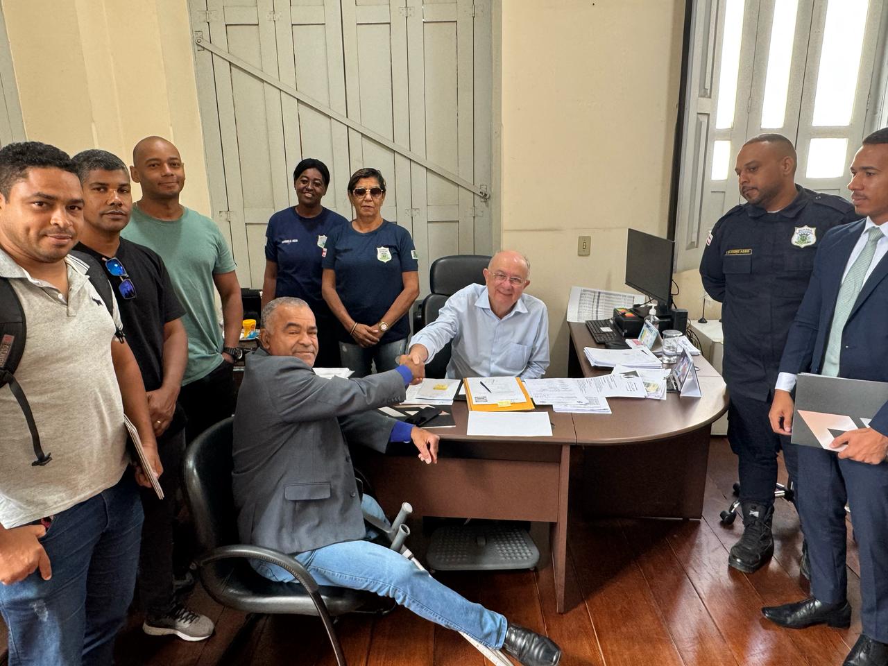 Durante a reunião, a categoria entregou uma minuta reivindicatória ao prefeito, destacando demandas que há anos aguardam solução. Entre os principais pleitos estão a revisão salarial, o pagamento do vale-transporte em pecúnia e o enquadramento vertical e horizontal dos guardas municipais.