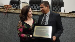 “Quero lhe agradecer, vereadora Eremita, pelo carinho durante todos esses anos, e pelo título que me concede neste dia. É uma honra nutrir essa relação de respeito que independe da política e que eu guardo em meu coração”. Com essas palavras, o radialista Edicarlos Silva dos Santos agradeceu, emocionado, ao Título de Cidadão Feirense que recebeu na noite desta quarta-feira (1) na Câmara Municipal. A homenagem foi proposta pela vereadora e presidente da Casa, Eremita Mota (PSDB).